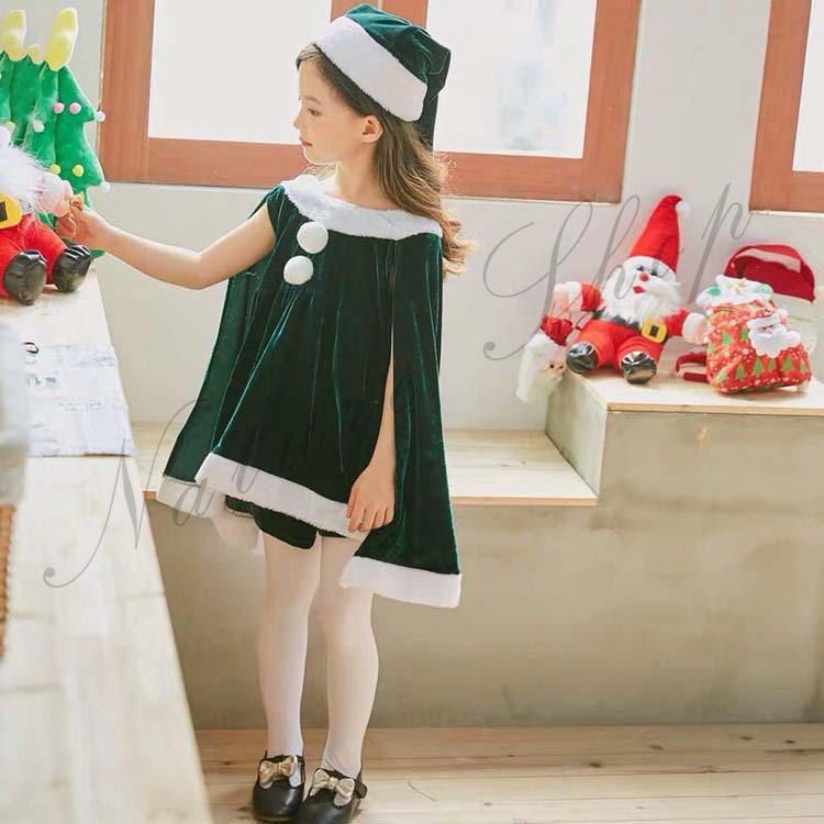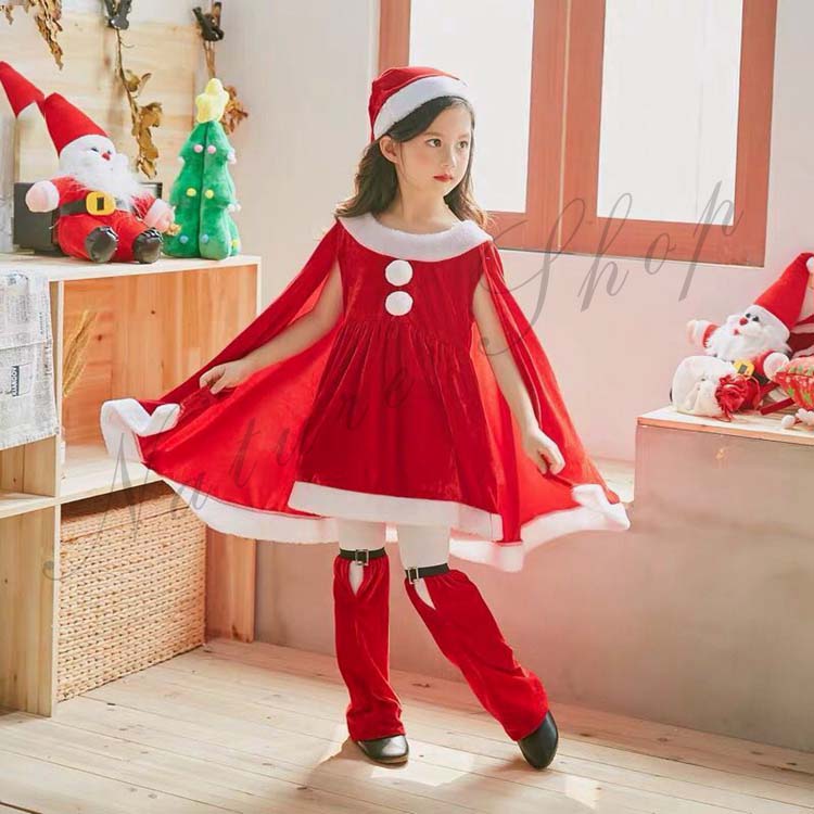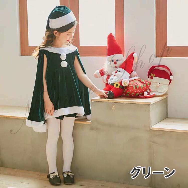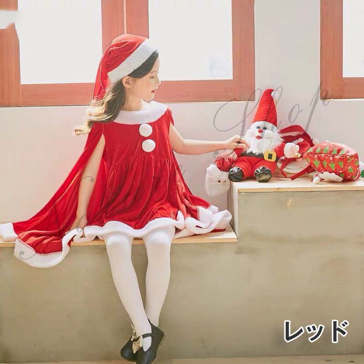 コスプレ衣装 キッズ サンタ 女の子 サンタ服 ポンチョ クリスマス ジュニア 衣装 コスチューム マント サンタ フード付き パーティー クリスマス キッズ服 演出服