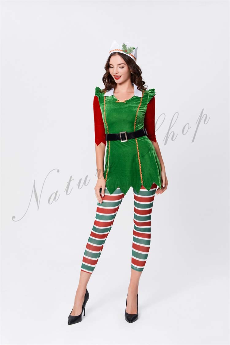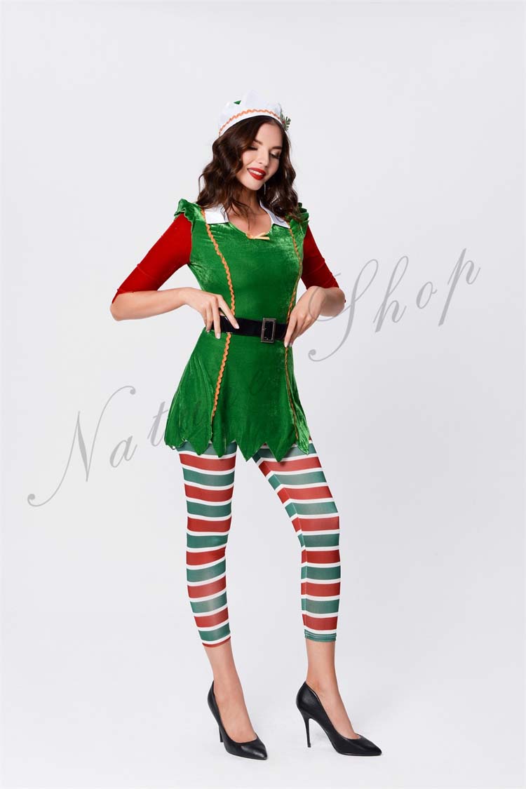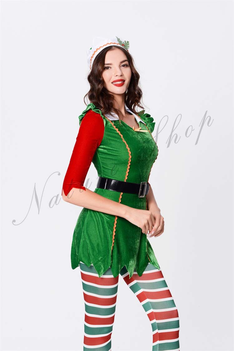 サンタ レディース コスプレ 衣装 クリスマスツリー 大人 長袖 コスチューム ベルトワンピース サンタ 4点セット コスプレ サンタ衣装 クリスマス クリスマス衣装 余興プレ コス
