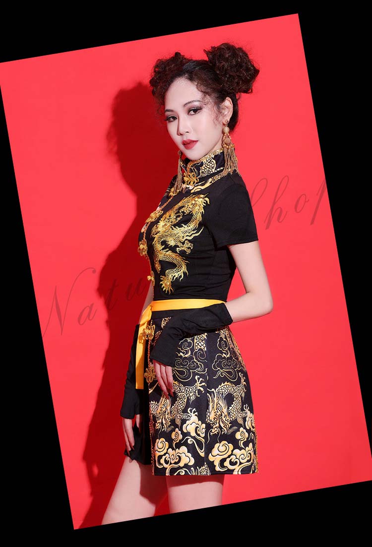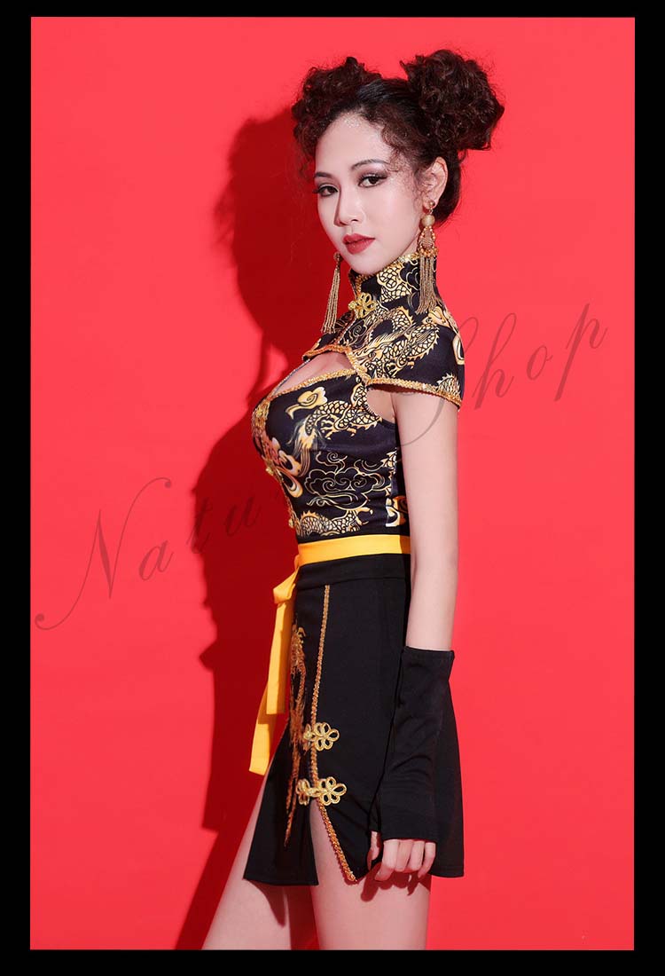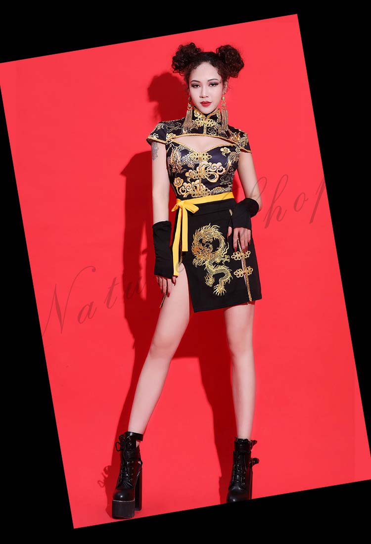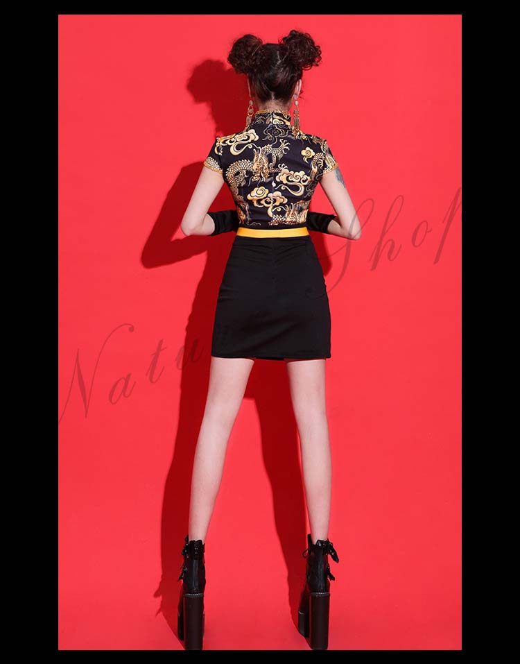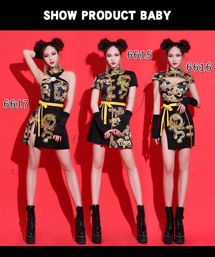 ダンス衣装 レディース 3点セット ワンピース ヒップホップ チャイナ風 ストリート系 HIHOP ファッション 派手 セクシー ハイネック ダンス 衣装