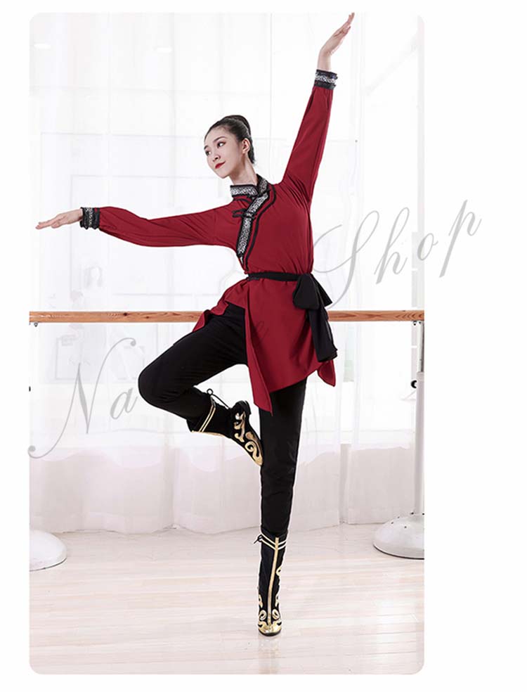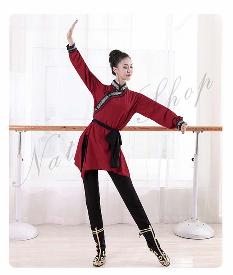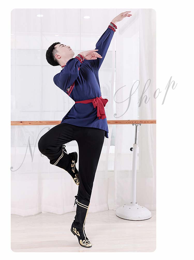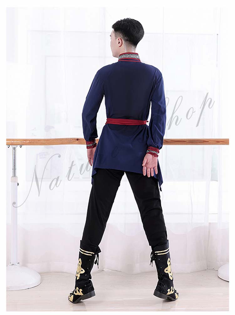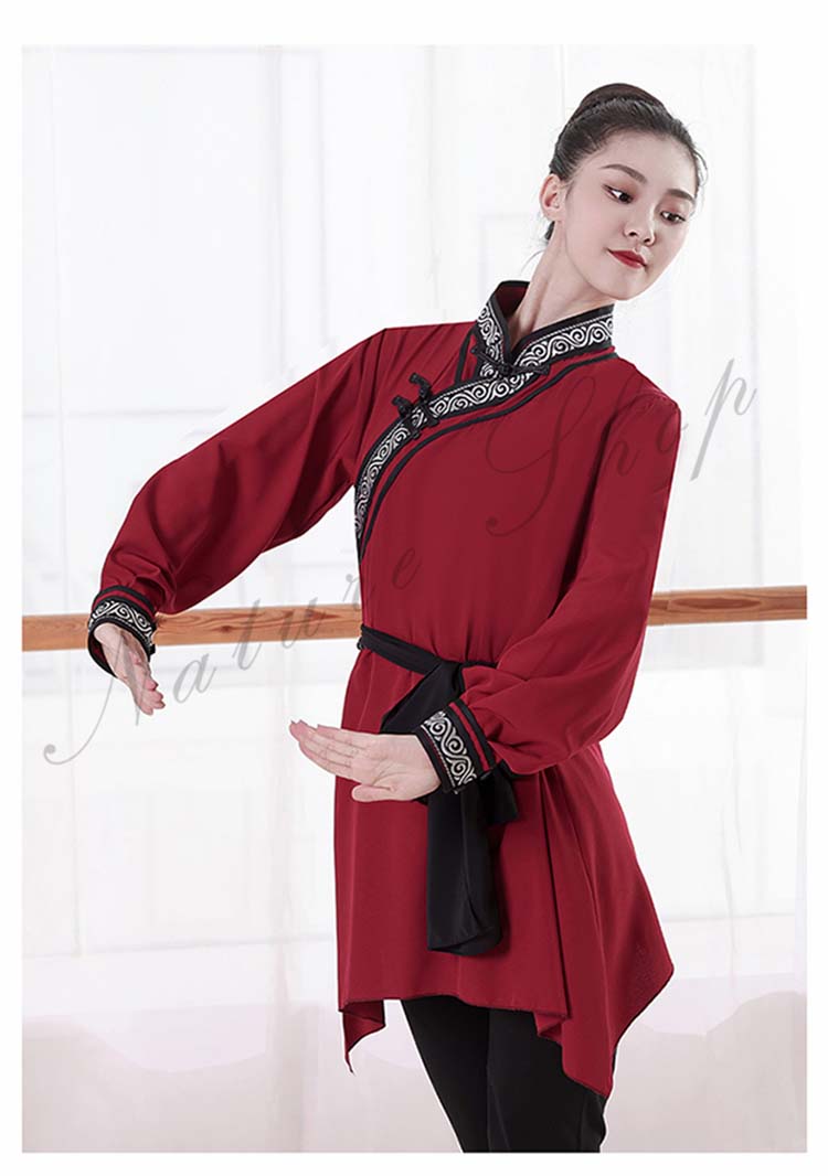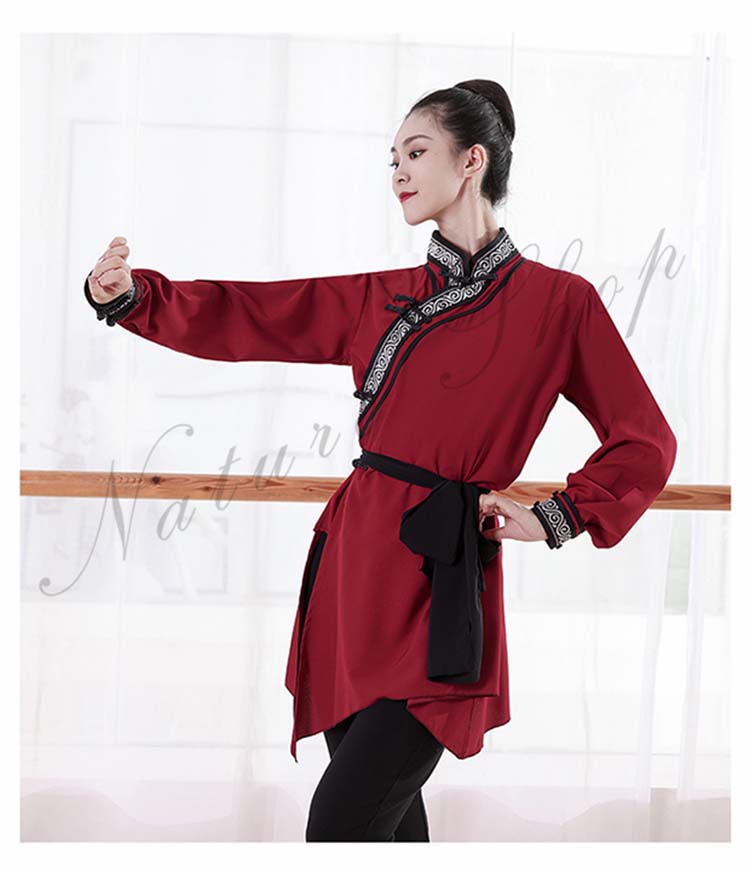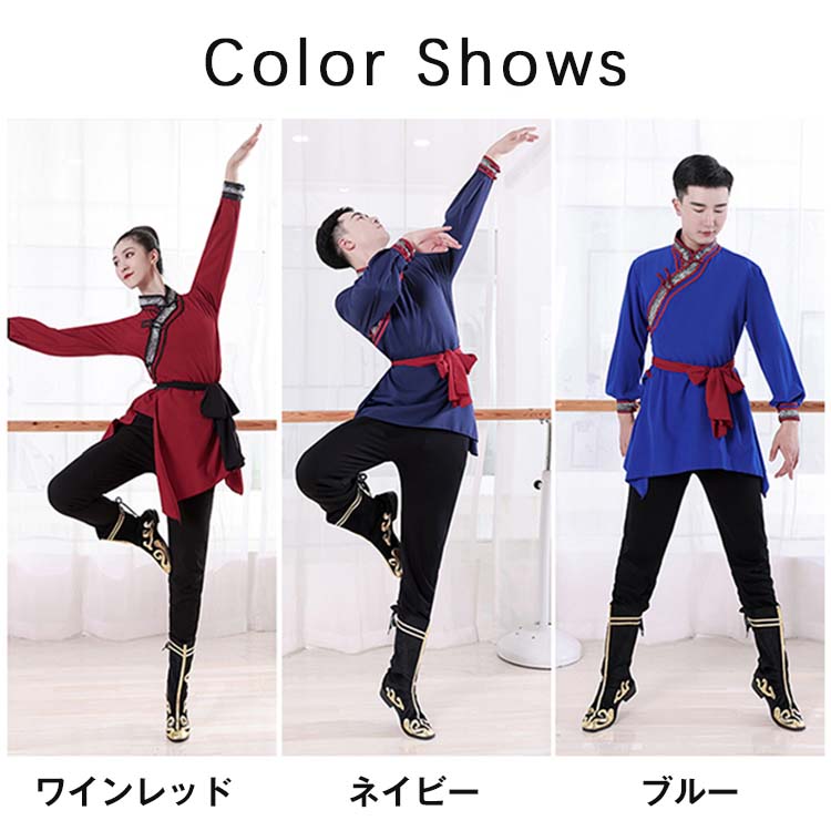 ダンス衣装 中華 練習着 レッスン着モンゴル舞踊 民族風 ダンス 衣装 チベット メンズ レディース 大人 長袖 ミドル丈 大きいサイズ エスニック ベルト紐 カンフー 太極拳 武術