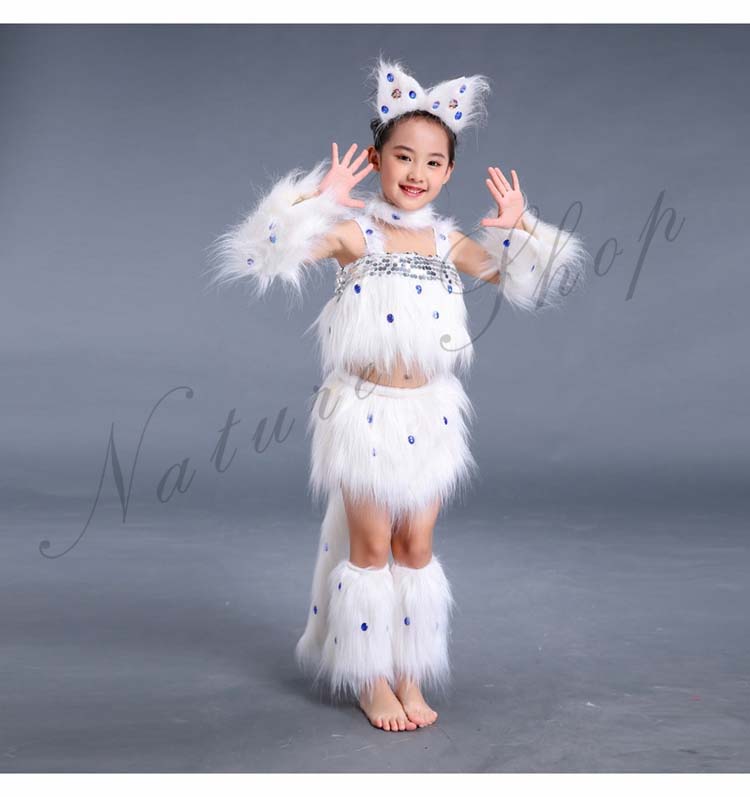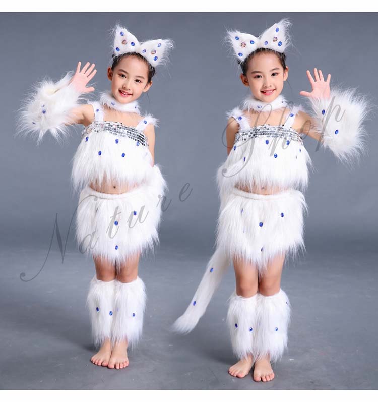ダンス衣装 猫ちゃん コスチューム 可愛い 髪飾り 変装 ハロウィン コスプレ衣装 着ぐるみ 女の子 舞台服 ステージ衣装 子供 動物 仮装 トップス 7点セット 袖カバー スカート