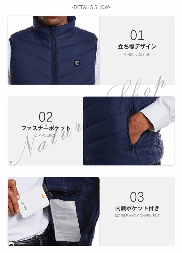 電熱ベスト ヒーターベスト 防寒ベスト メンズ ヒータージャケット 電熱ジャケット USB充電 アウトドア 防寒着 3段階温度調整 防寒対策 水洗い可 防寒チョッキ 男女兼用 加熱ベスト