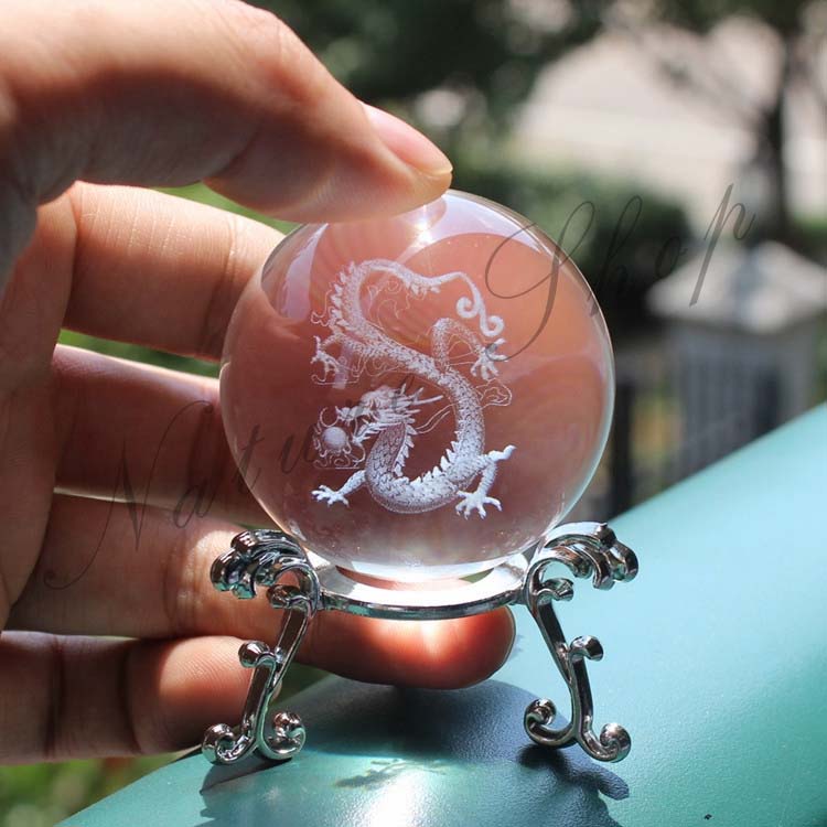置物 クリスタル球 龍の置物 ボール ドラゴン 台座付き 玄関 皇帝龍 運気急上昇 人工 水晶 風水グッズ 風水 レーザー彫り 溶錬 水晶玉 昇龍 50mm 龍 金運祈願 開運 クリスタル