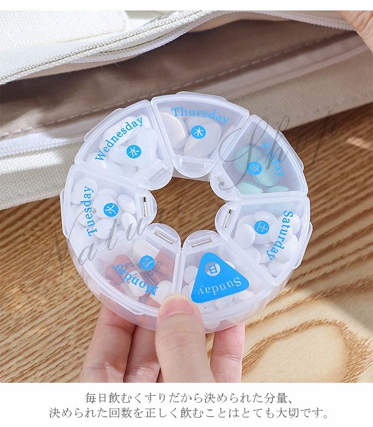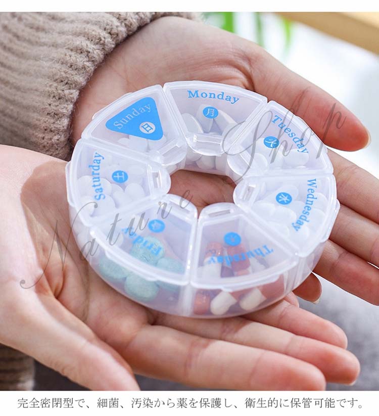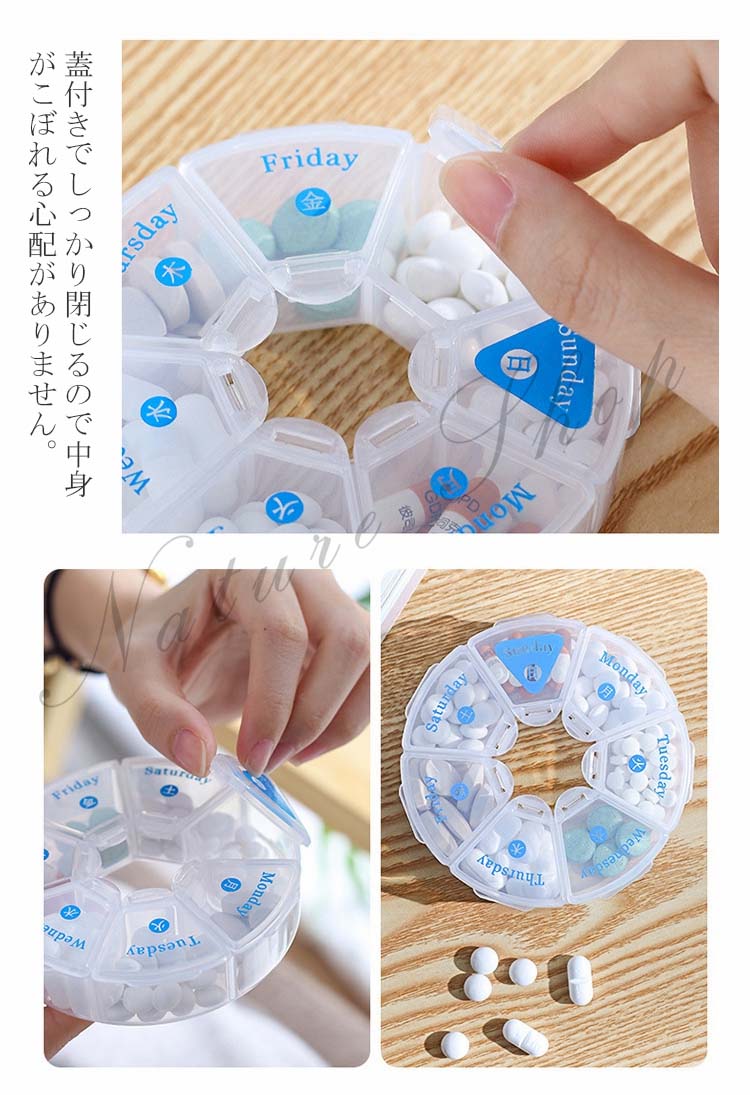 ピルケース 1週間 薬入れ 薬ケース 薬箱 コンパクト 飲み忘れ防止 仕切り 小物入れ 薬収納 1日分 携帯便利 錠剤 ケース 収納ケース 携帯容器 旅行 整理 介護 かわいい