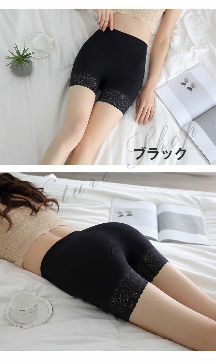 ペチパンツ 見せパン 透け防止 吸水速乾 スリム サラサラ ペチコート 裾レース スパッツ ボクサーパンツ チラ見え防止 ウエストゴム インナーパンツ ショートパンツ レディース