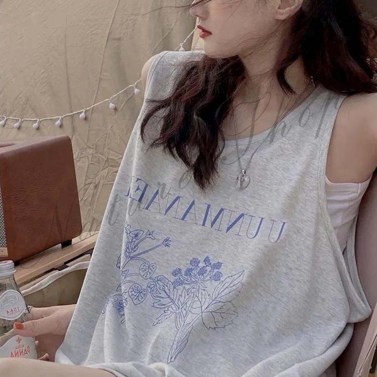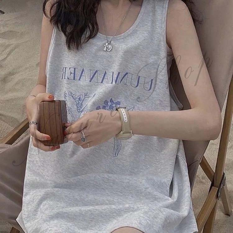 タンクトップレディースTシャツノースリーブUネックロゴプリント