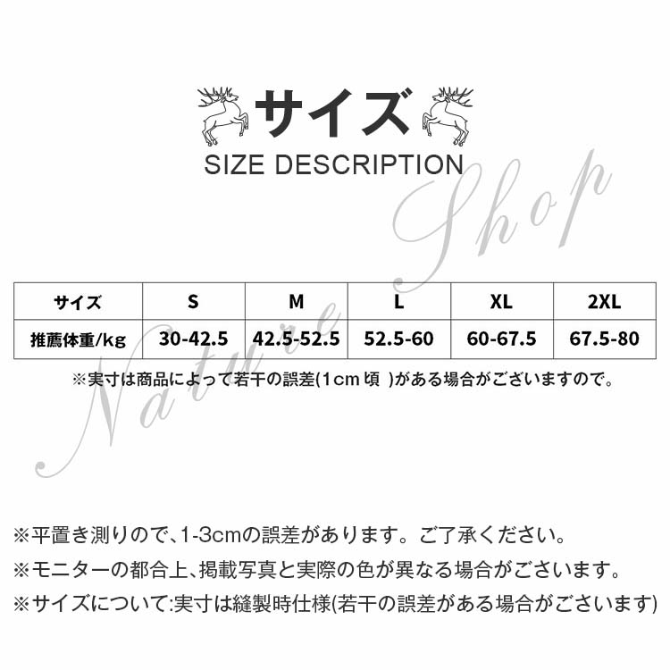サイズ: S(30-42.5kg) M(42.5-52.5kg) L(52.5-60kg) XL(60-67.5kg) 2XL(67.5-80kg)