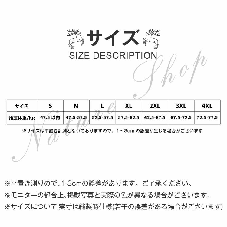カラー: S(47.5kg以内) M(47.5-52.5kg) L(52.5-57.5kg) XL(57.5-62.5kg) 2XL(62.5-68.5kg) 3XL(67.5-72.5kg) 4XL(72.5-80kg)