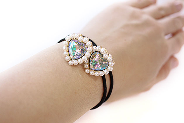 2本セットへアゴム クリスタル風ハート