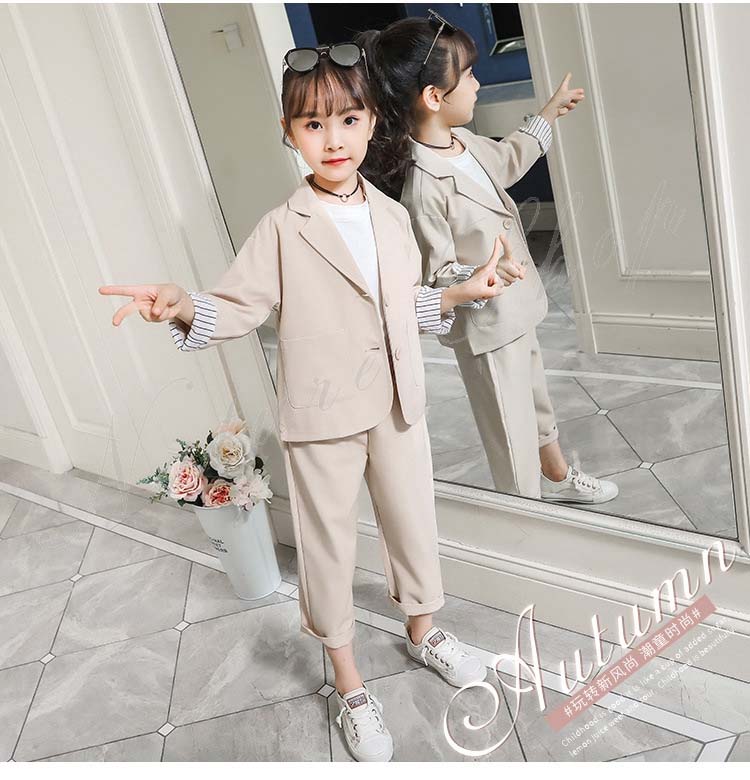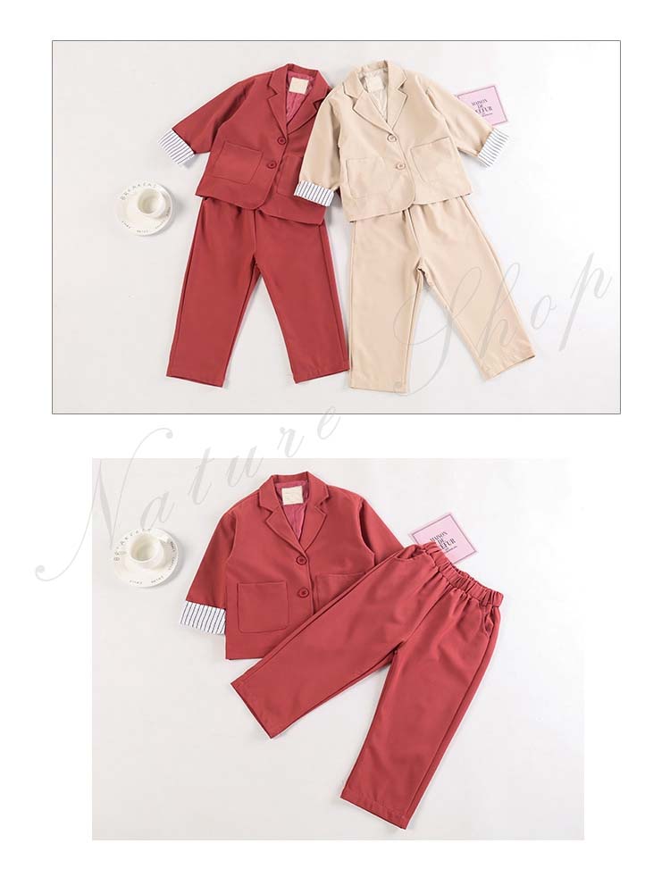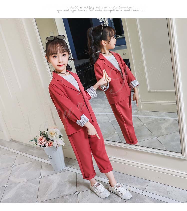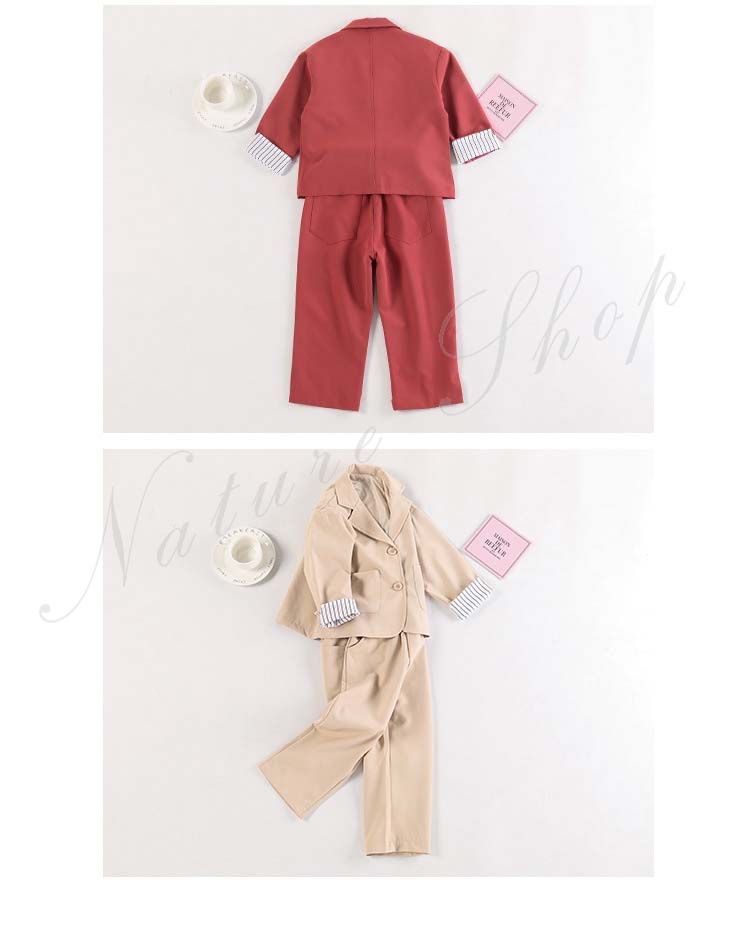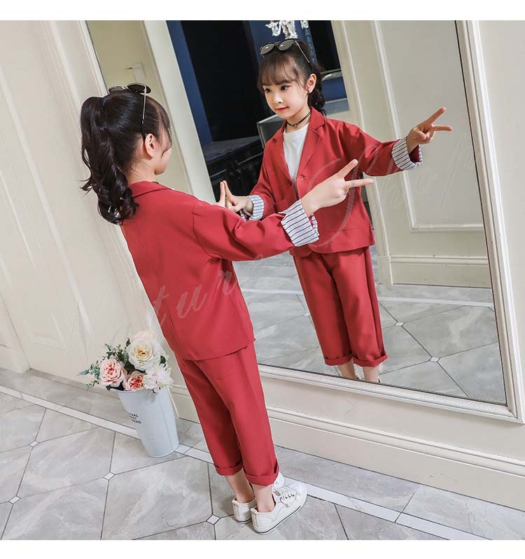 子供服 フォーマル 女の子 パンツスーツ 長ズボン ロング丈パンツ 長袖 スーツジャケット スーツ ジャケット ストライプ 2colors かわいい 可愛い カジュアル 普段着 通学