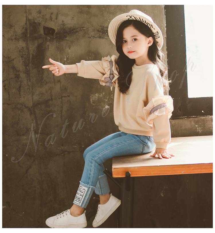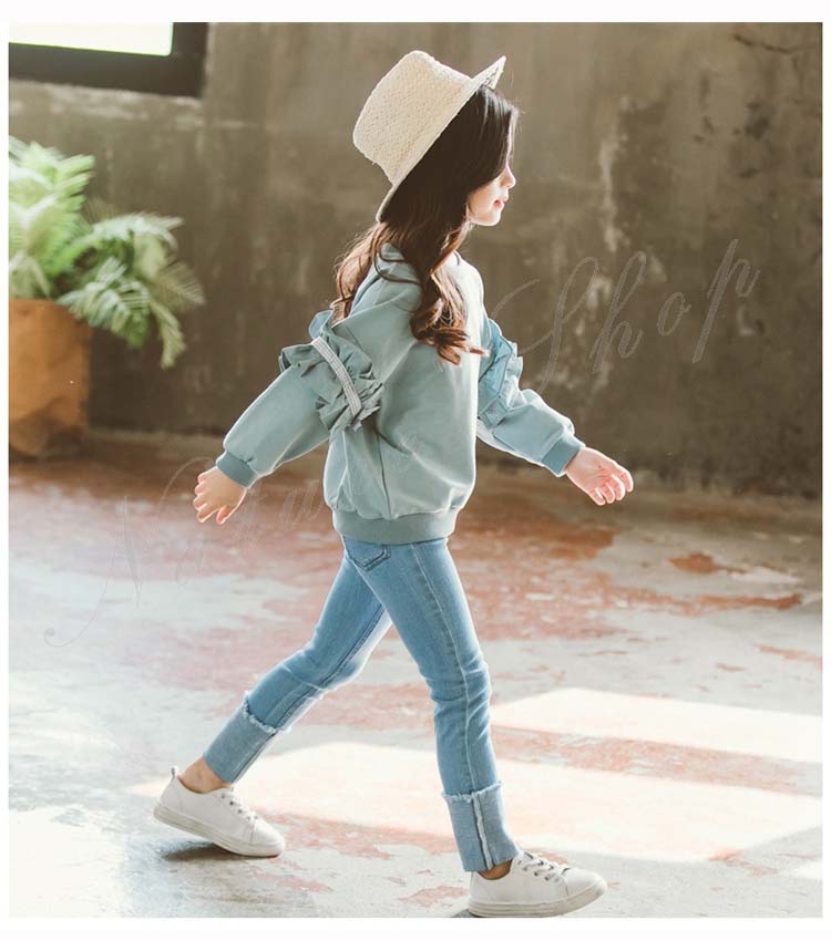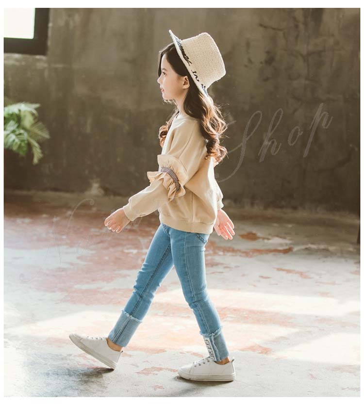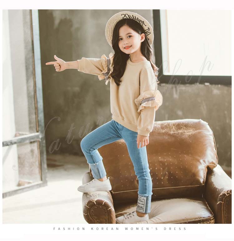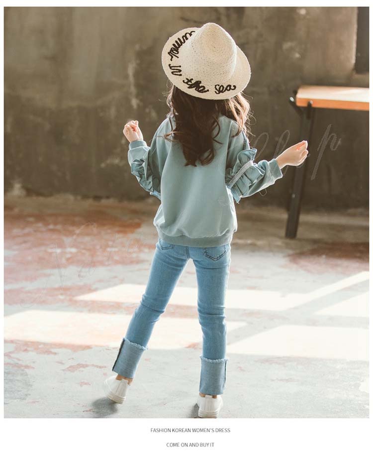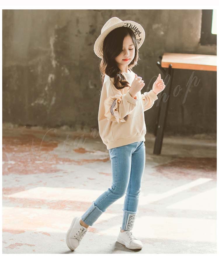 子供服 子ども服 女の子 カジュアル ナチュラル 春秋 長袖 パーカ 袖 フリルデザイン ジーンズ デニム ロング丈 ズボン おしゃれ 可愛い ゆったり 大きいサイズ レディース