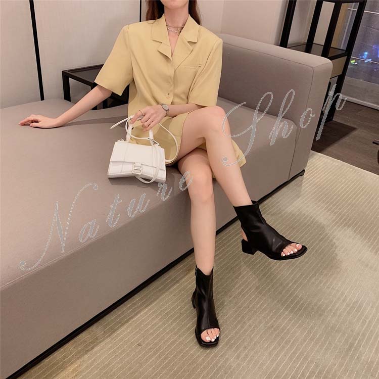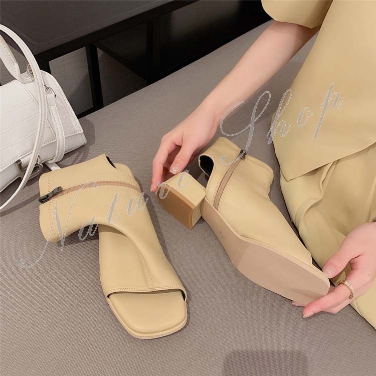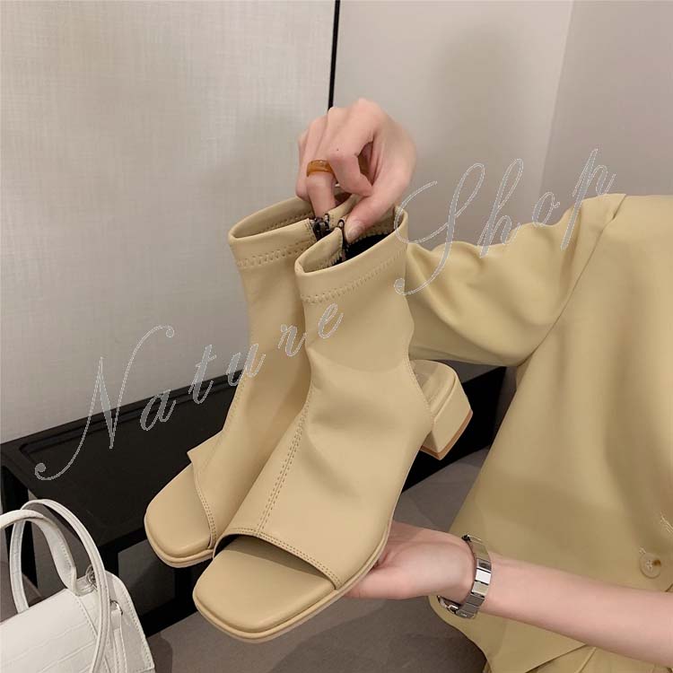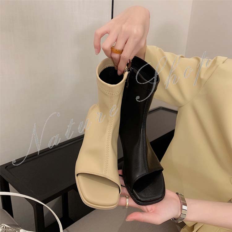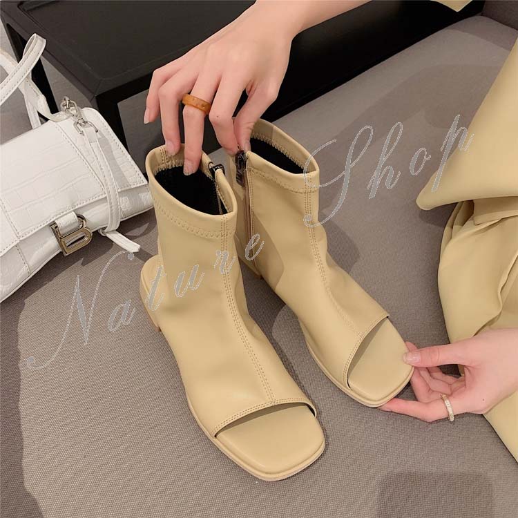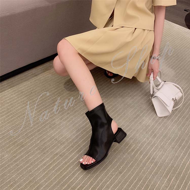 ショートブーツ レディース ブーツサンダル カジュアルブーツ ローヒール ショート丈 シンプル オープントゥ 春 夏 秋 おしゃれ 20代 30代 40代 履きやすい 歩きやすい