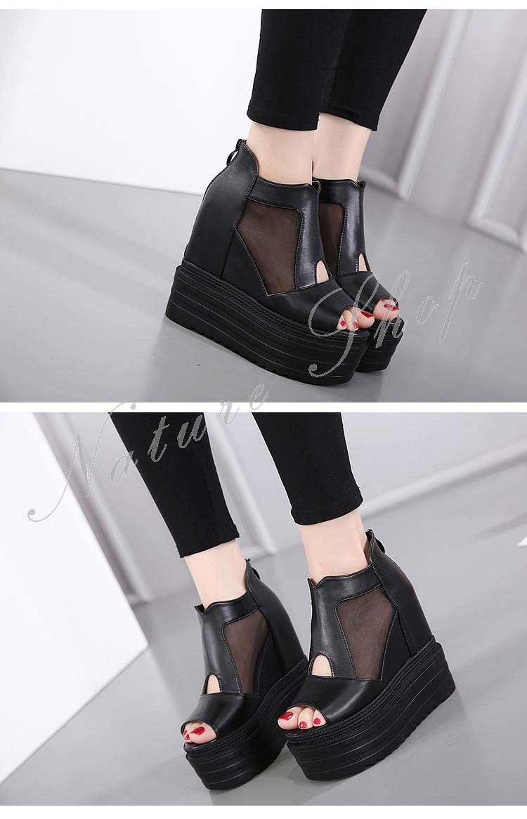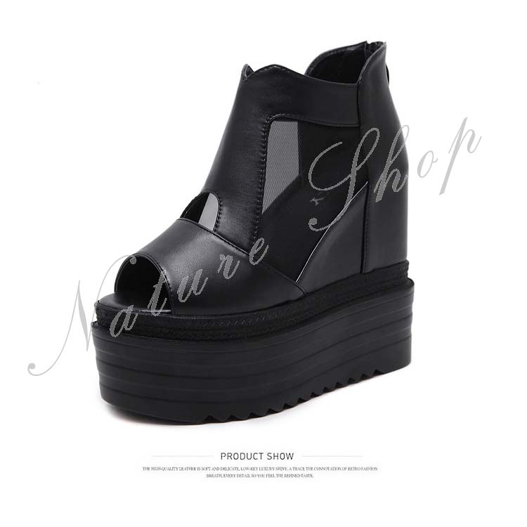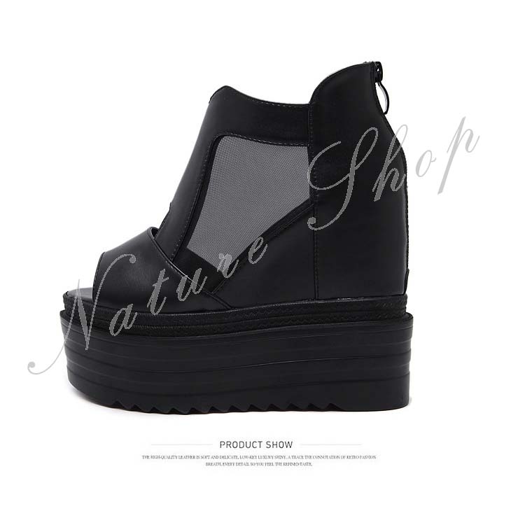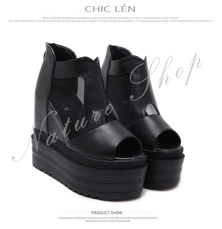 ブーツサンダル レディース サマーブーツ 厚底 サンダル 約ヒール12cm シースルー オープントゥ ヒールサンダル ウェッジソール オシャレ シューズ メッシュ カジュアル パンプス