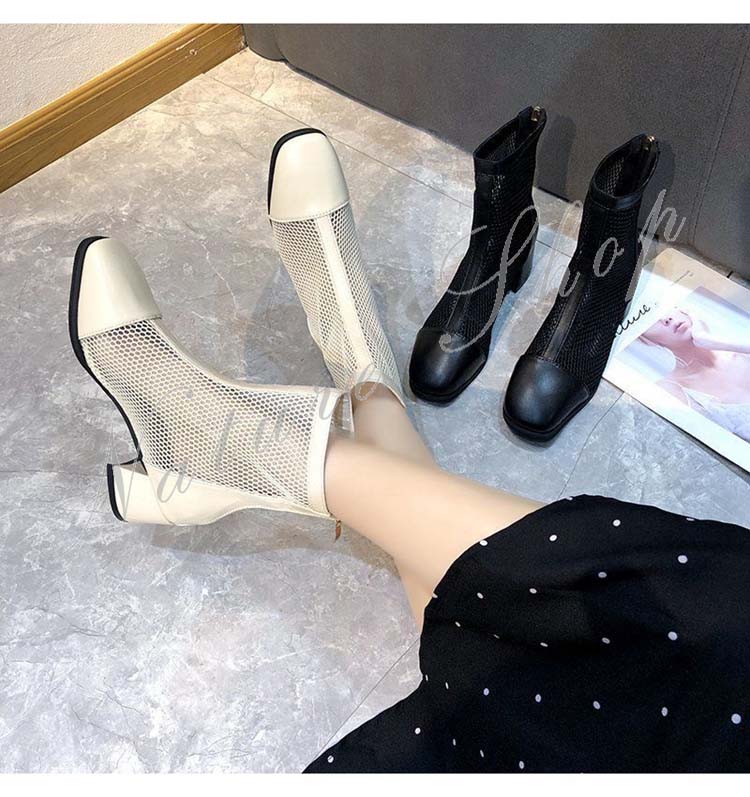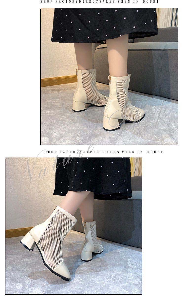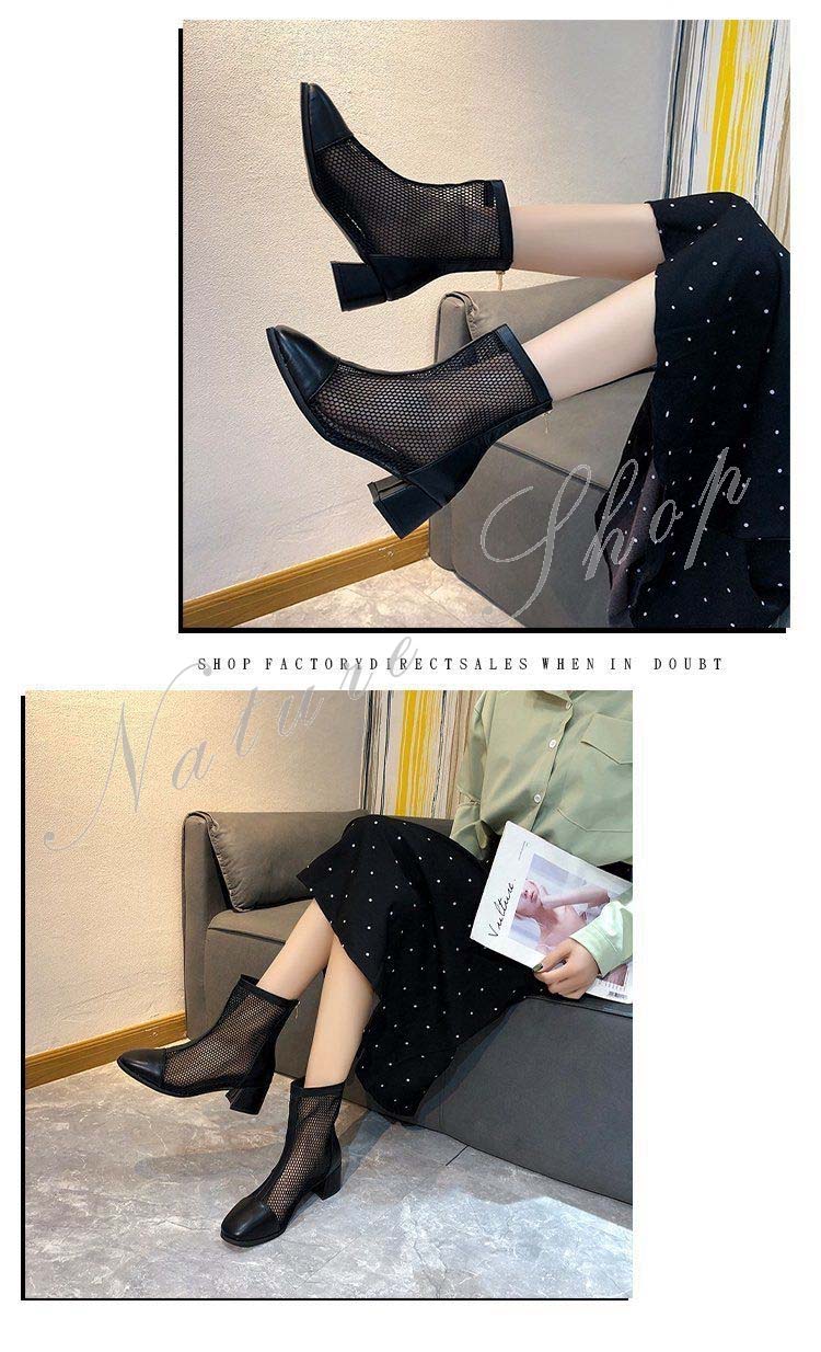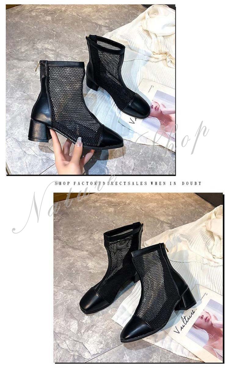 ブーツサンダル レディース シューズ ヒール4cm ブーツ メッシュ サマーブーツ スプリング ブーツ 春夏 ブーツ レース 軽い 美脚サンダル シースルー 透かしリボン 夏 可愛い 靴
