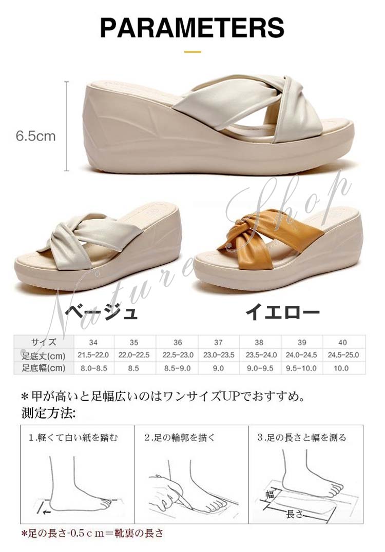 ウェッジソール レディース サンダル 厚底サンダル 通気 ミュールサンダル オフィスサンダル オープントゥ サンダル ウェッジヒール 履きやすい 靴 約6.5cm ヒール ボータイ サボ