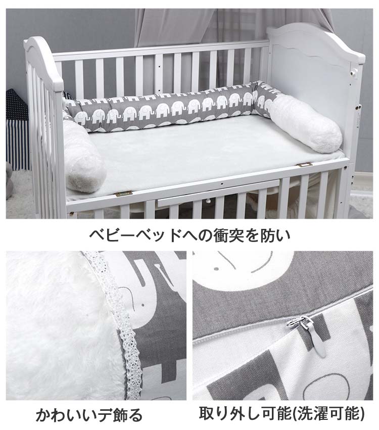 ベビー ベッドガード 寝返り防止クッション クッション 2M サイドガード ノットクッション 赤ちゃん 新生児 ベッドバンパー ベビー寝具 ソファークッション 抱き枕 ふわふわ 洗える