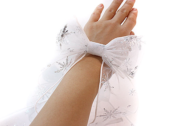 BIGふんわり足付きリボン◎雪の結晶柄