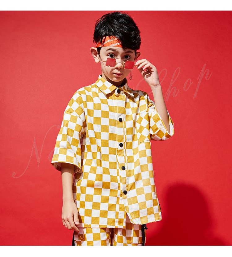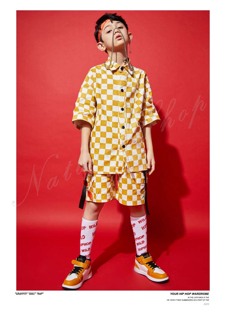 ヒップホップ 衣装 ファッション 半袖 シャツ 短パン ショートパンツ 半ズボン チェック柄 総柄 キッズダンス衣装 ダンスウェア おしゃれ