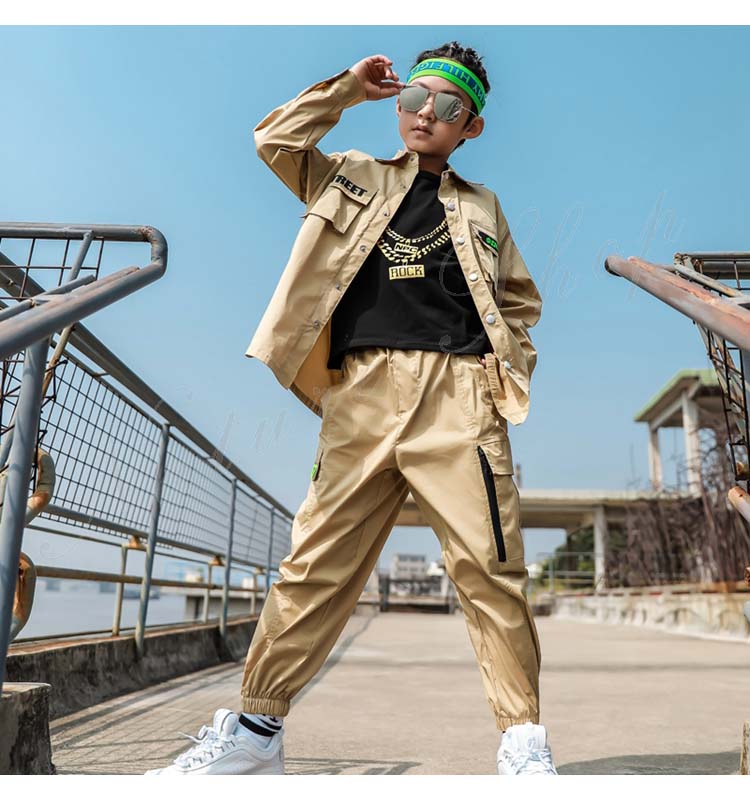 ヒップホップ 衣装 ファッション 長袖 ジャケット サルエルパンツ ロング丈 秋冬 キッズダンスウェア 上下 jazz HIPHOP かっこいい おしゃれ