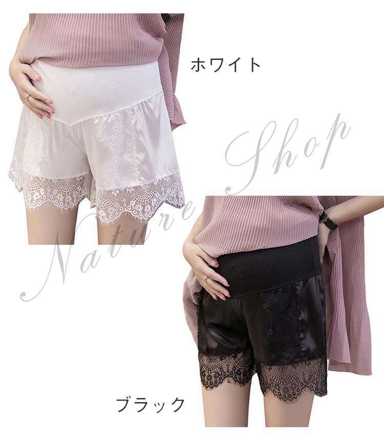 マタニティ パンツ レース 妊娠服 産前 妊婦 マタニティサポート ショートパンツ 出産準備 レギンスショーツ 妊娠用 マタニティ ショーツ 下着 インナー 2color ブラック
