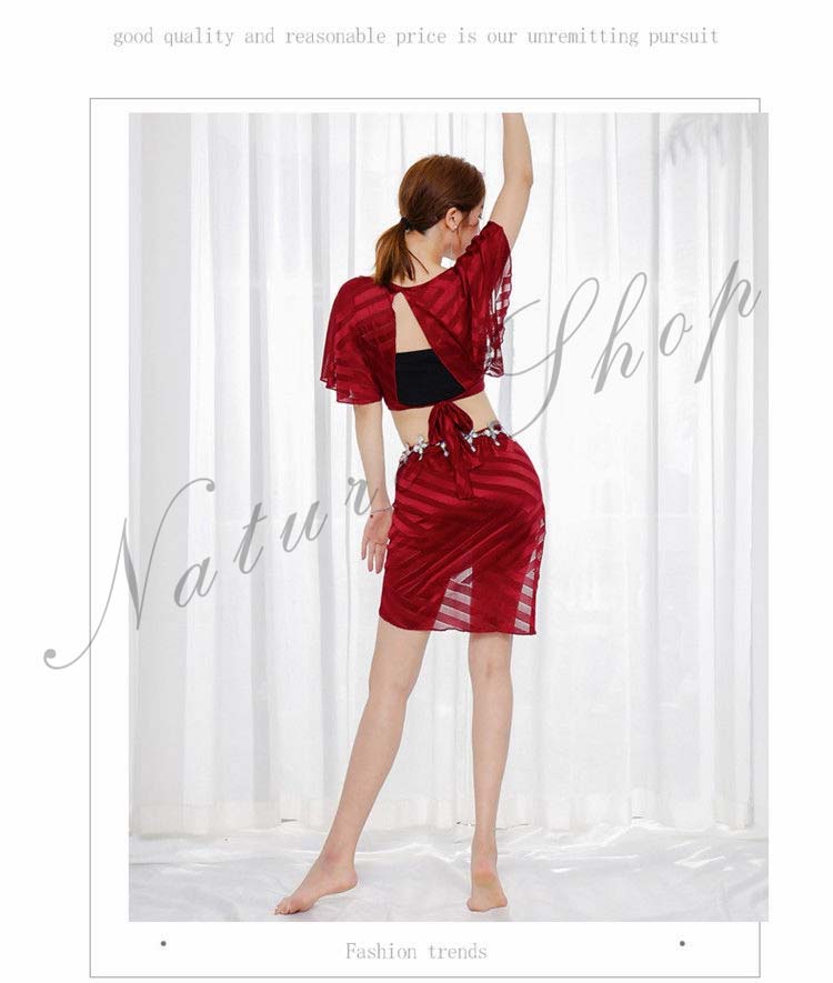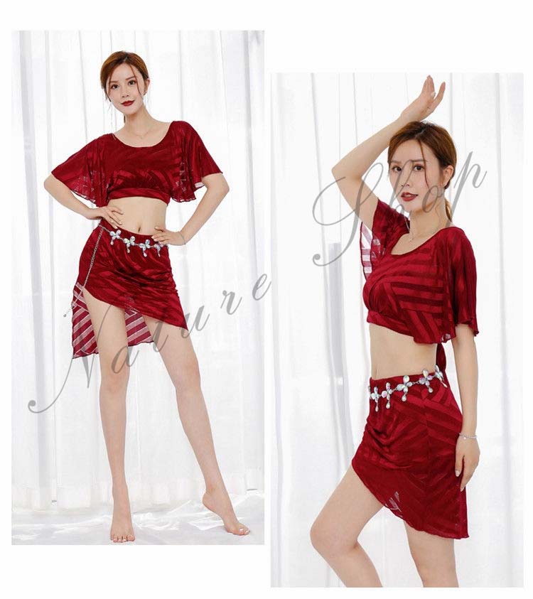 ベリーダンス衣装 ベリーダンススカート レッスンスカート フィットネスウエア バレエウエア モノトーン ベリーダンスレッスンウエア ベリーダンスレッスン着 赤の衣装セット