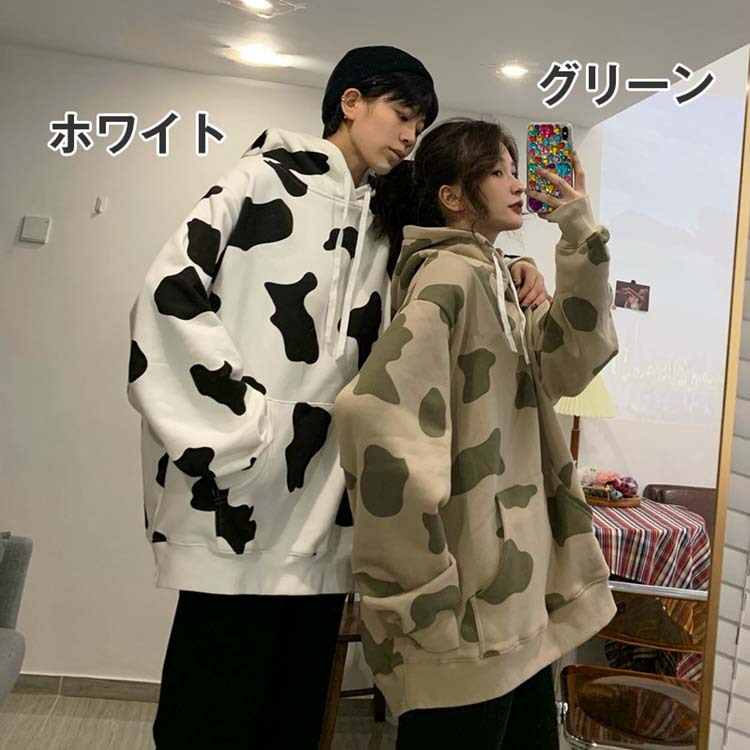 パーカー 牛 トレーナー レディース メンズ 秋 長袖 体型カバー プルオーバー ゆったり おしゃれ フード付き シンプル 牛柄 ルーズ カジュアル 秋新作 スウェット 可愛い スポーツ 通学通勤 ト