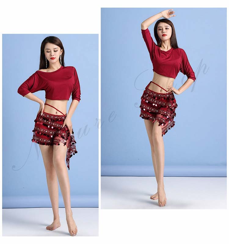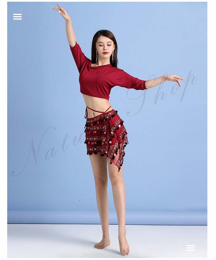 ベリーダンス衣装 レッスン着 セクシー 七分袖 トップス ロング丈 スカート ベリーダンス 練習着 ダンス 衣装 ステージ衣装 社交ダンス ラテンダンス レッスンウェア ヨガウェア