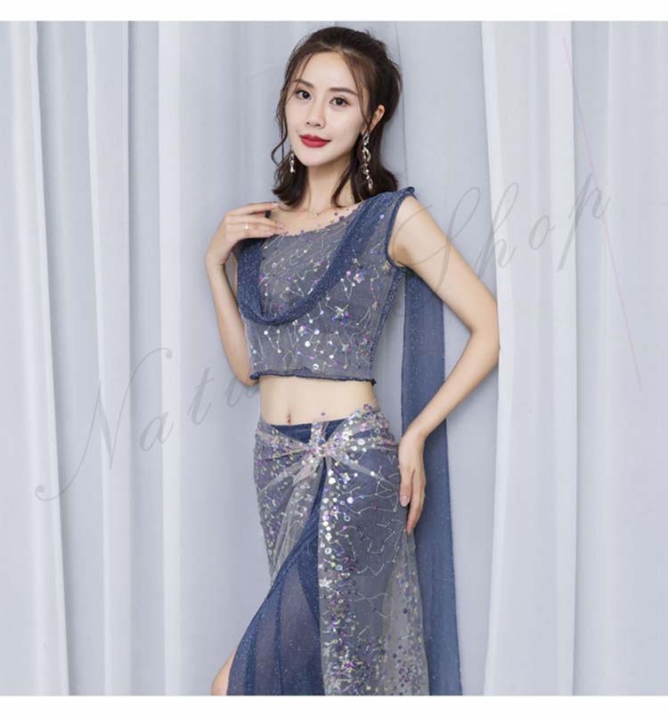 社交ダンス衣装 ダンスウェア レッスン着 ベリーダンス衣装 トップス スパンコール ステージ衣装 ダンス発表会 練習着 上下セット ステッジ衣装 ロングスカート セットアップ