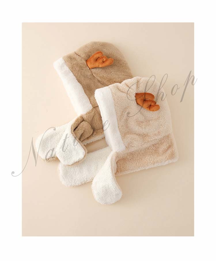 子供帽子 冬 マフラー付き キッズ もこもこ あったかい 帽子 女の子 暖かい アウトドア 男の子 防寒 マフラー ベビー小物 耳付き 肌触り トナカイ プレゼント キャップ 日常用 誕生日