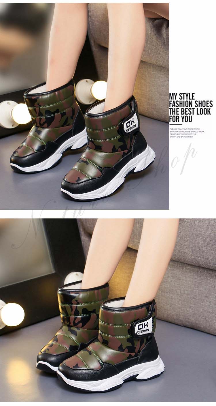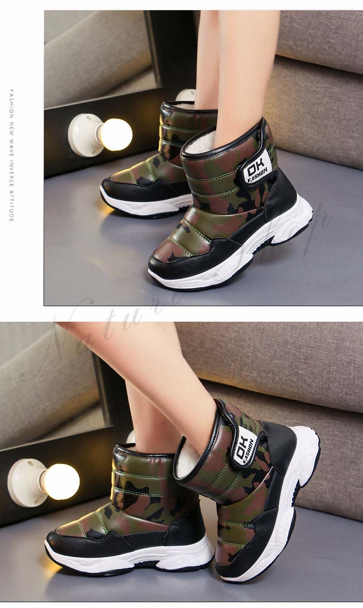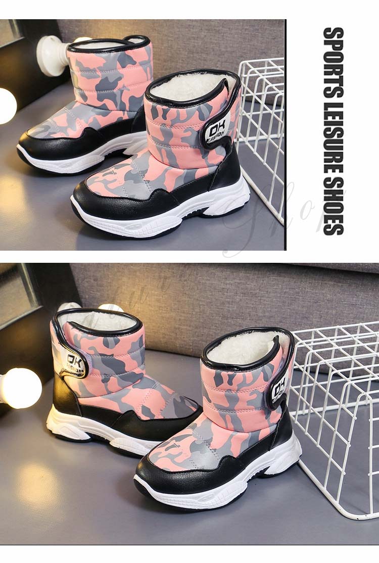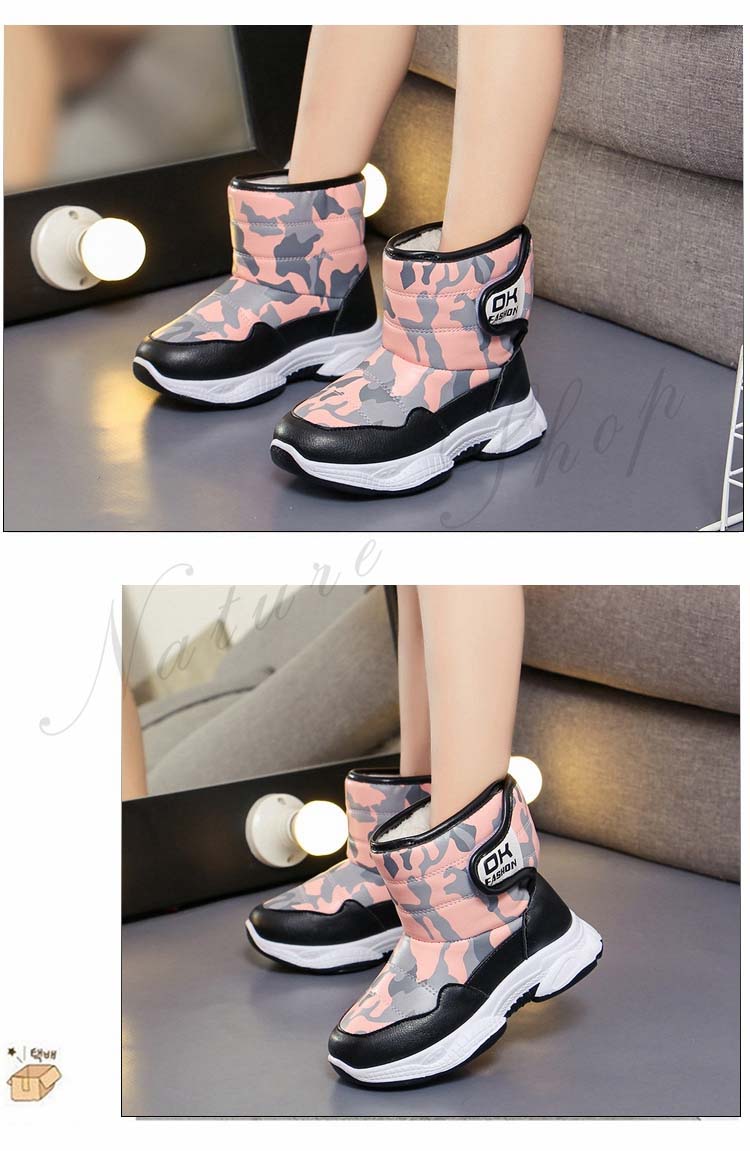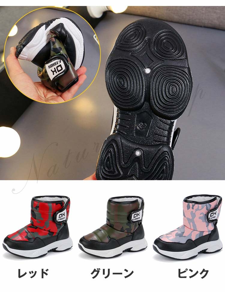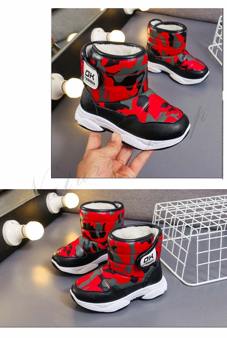 スノーブーツ キッズ ショートブーツ 迷彩 男の子 雪遊び スノーシューズ ジュニア 雪 女の子 シューズ 子供 防寒ブーツ 3color 防水 保温 アウトドア 軽量 冬 痛くない カジュアル