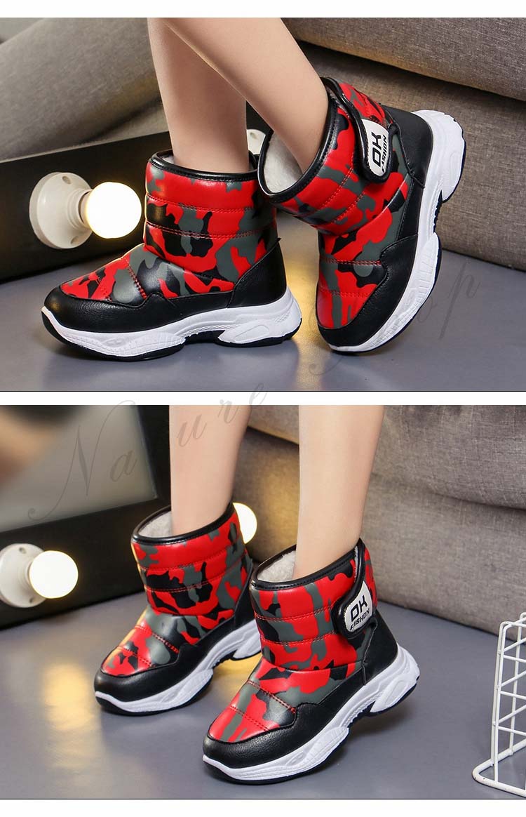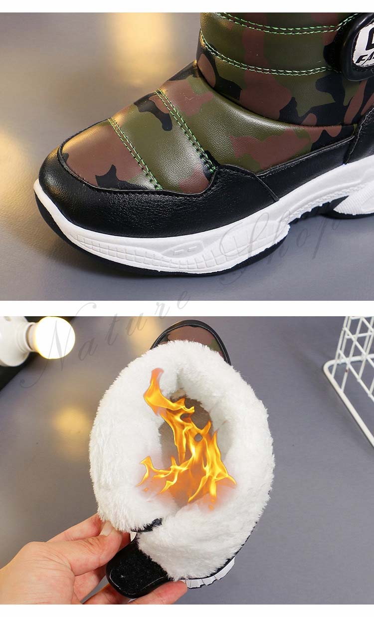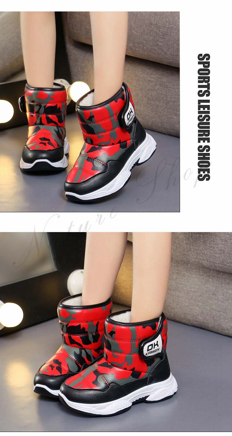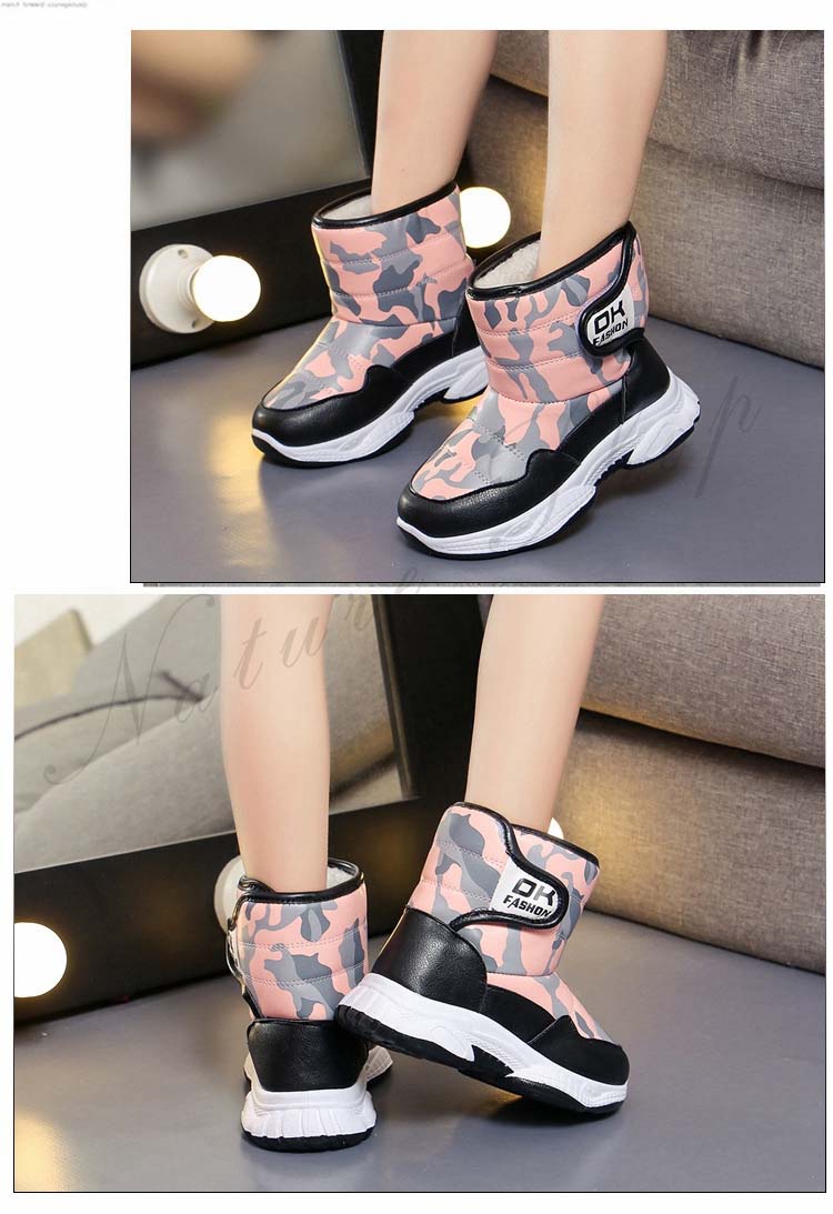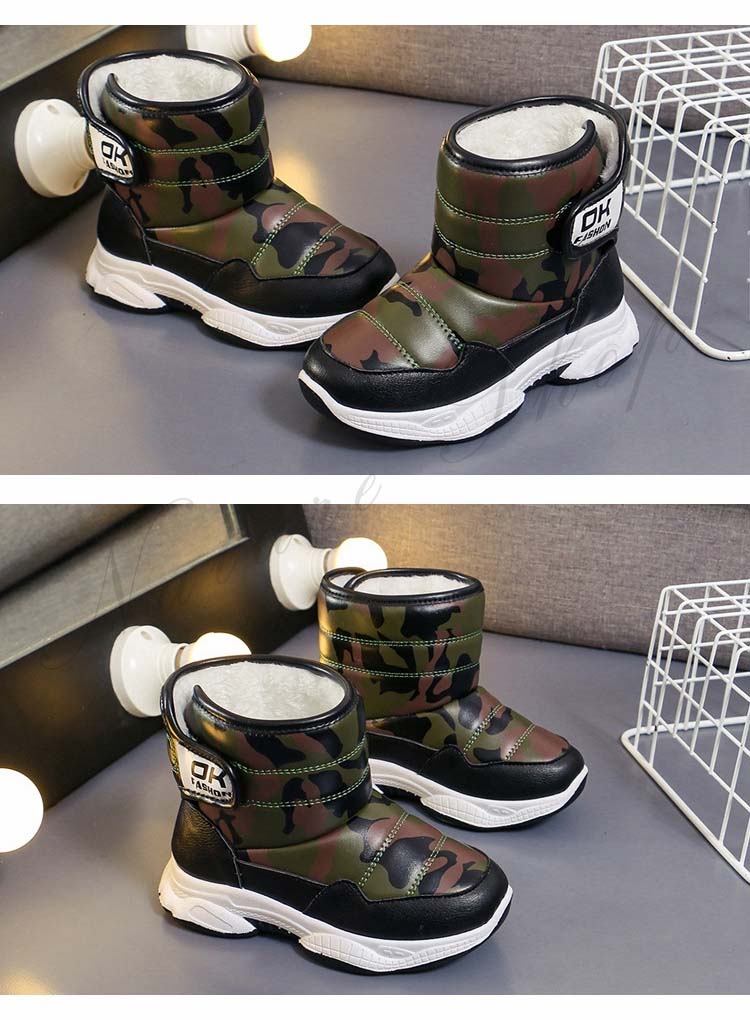 スノーブーツ キッズ ショートブーツ 迷彩 男の子 雪遊び スノーシューズ ジュニア 雪 女の子 シューズ 子供 防寒ブーツ 3color 防水 保温 アウトドア 軽量 冬 痛くない カジュアル