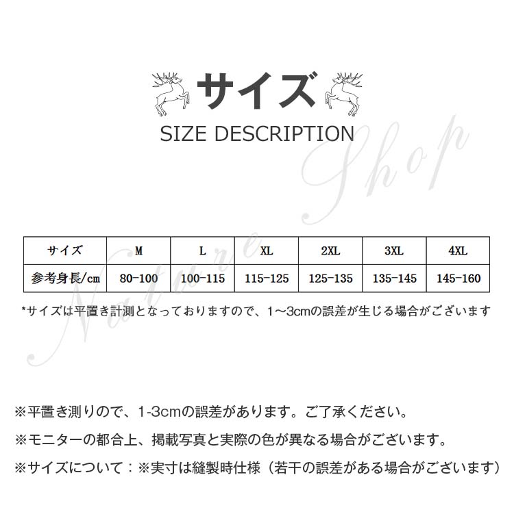 サイズ: M(推薦身長80-100cm) L(推薦身長100-115cm) XL(推薦身長115-125cm) 2XL(推薦身長125-135cm) 3XL(推薦身長135-145cm) 4XL(推薦身長145-160cm)