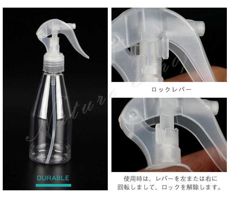 スプレーボトル 詰替え容器 ミスト ロックレバー付け 霧吹き アルコール対応 200ml 透明 PET素材 家庭用 空ボトル スプレー容器 スプレーボトル 詰替ボトル コスメ用 5個セット