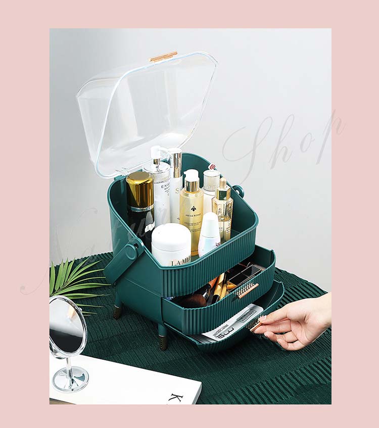 コスメボックス メイクボックス 化粧品ケース 大容量 ボックス ケース 小物収納 小物入れ 化粧品収納 引き出し式 卓上収納 持ち運び 家庭用 透明蓋 儀式感