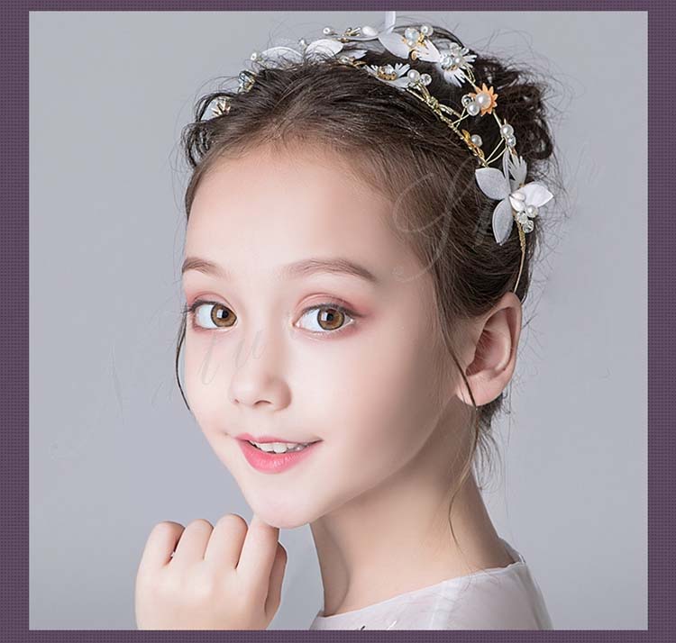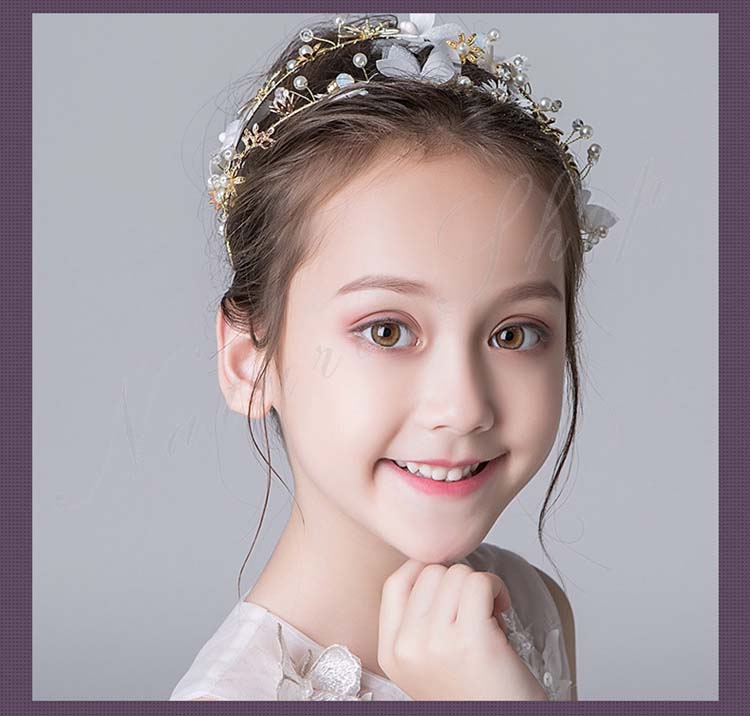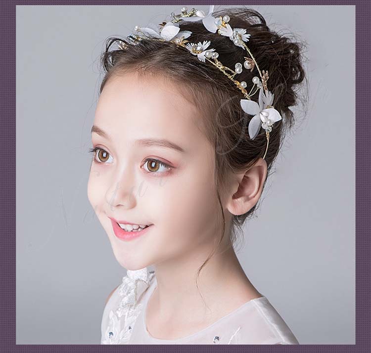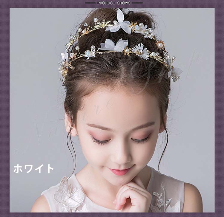 ヘアアクセサリー キッズ 髪飾り ヘッドドレス 子供 パール ヘアバンド 可愛い 花 フラワースタイル 白 ゴールド ホワイト パーティー コンクール ピアノ発表会 フォーマル 発表会