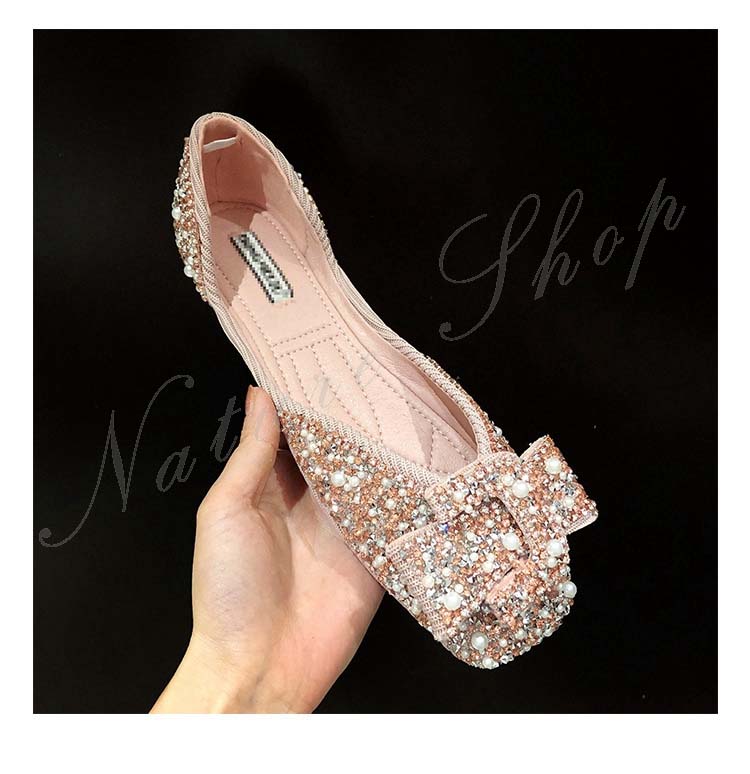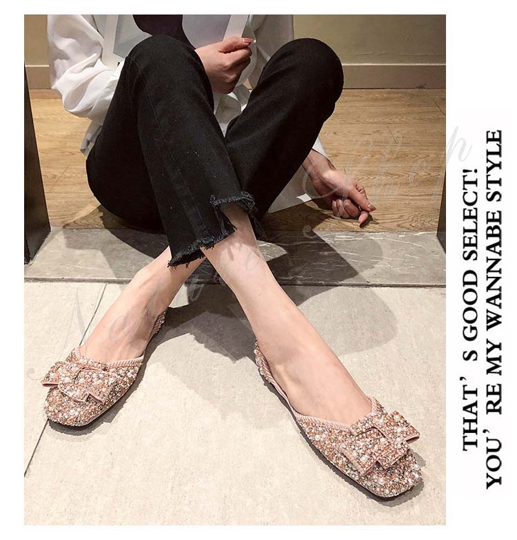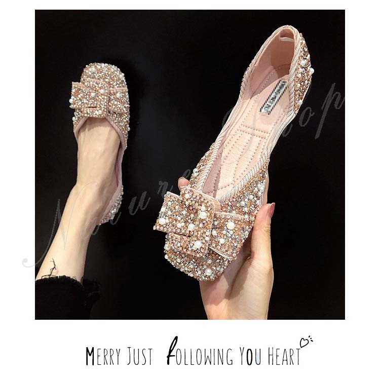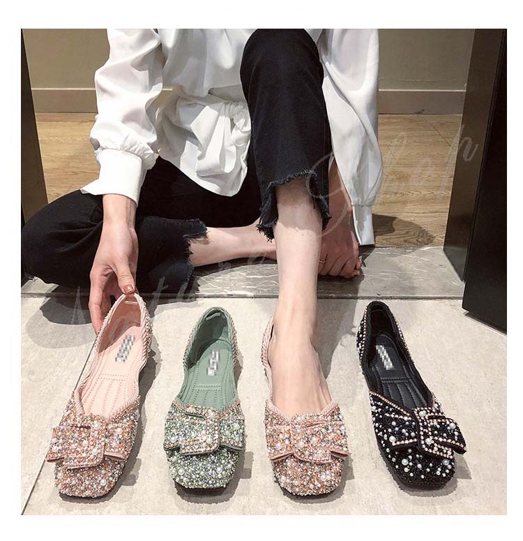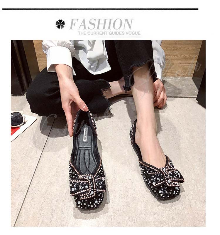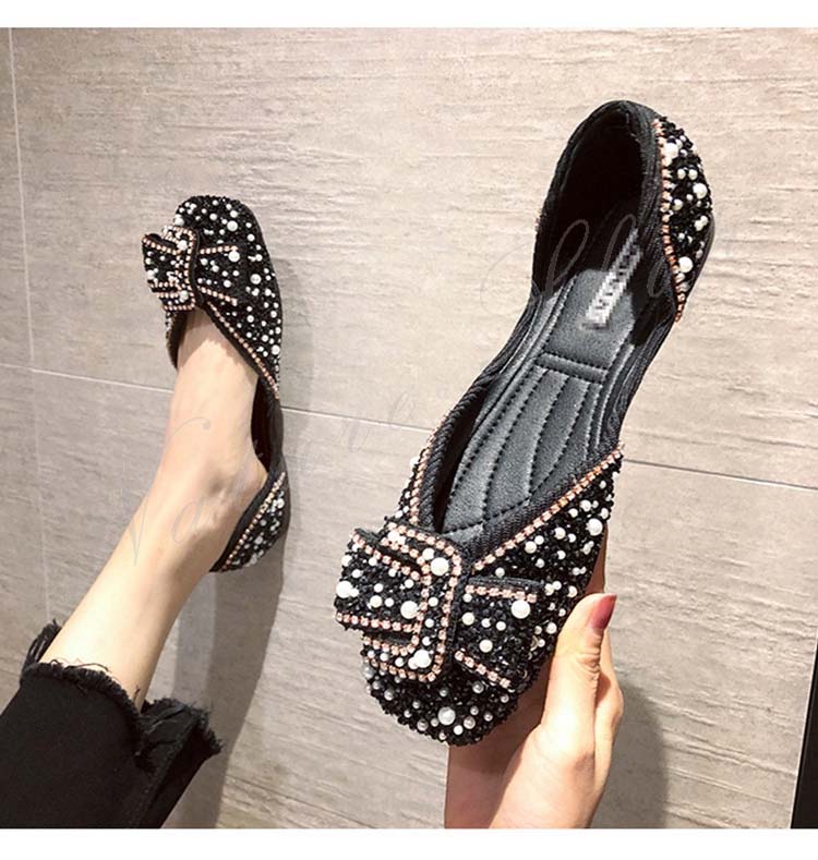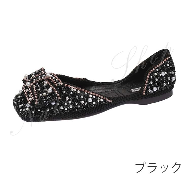 パンプス ぺたんこ 柔らか フラットシューズ 歩きやすい モカシン ローファー パール ラインストーン 幅広 フラットソール リボン飾り 大きいサイズ サンダル モカシンシューズ