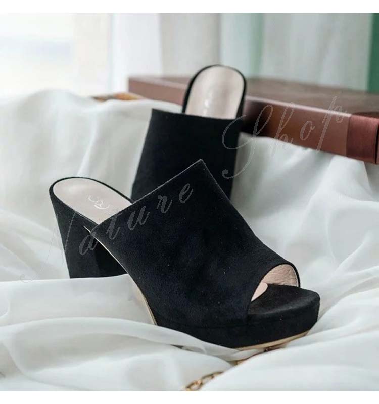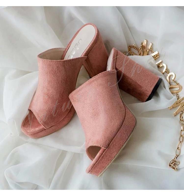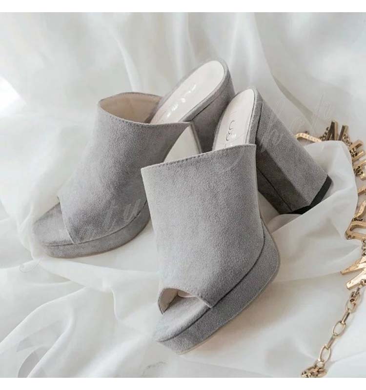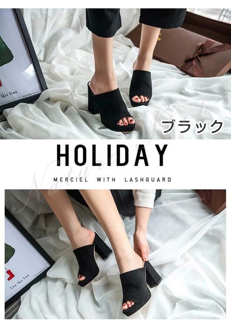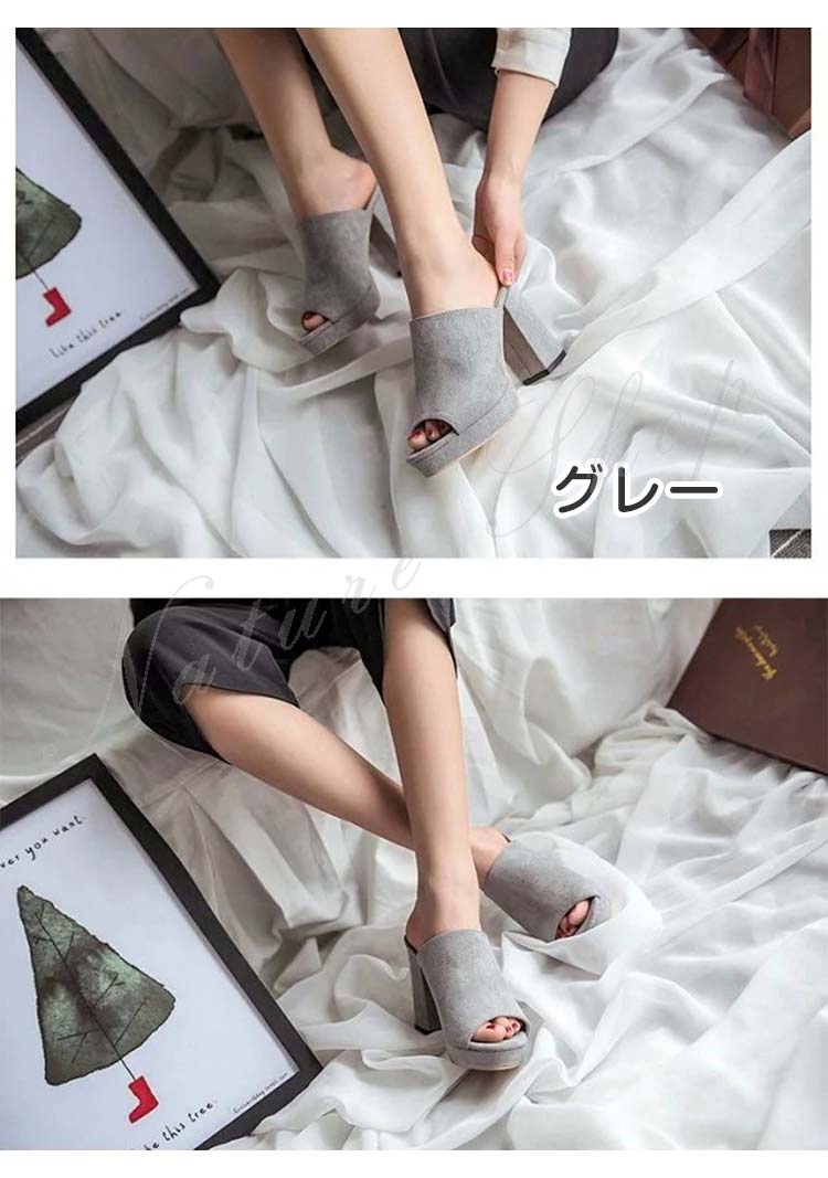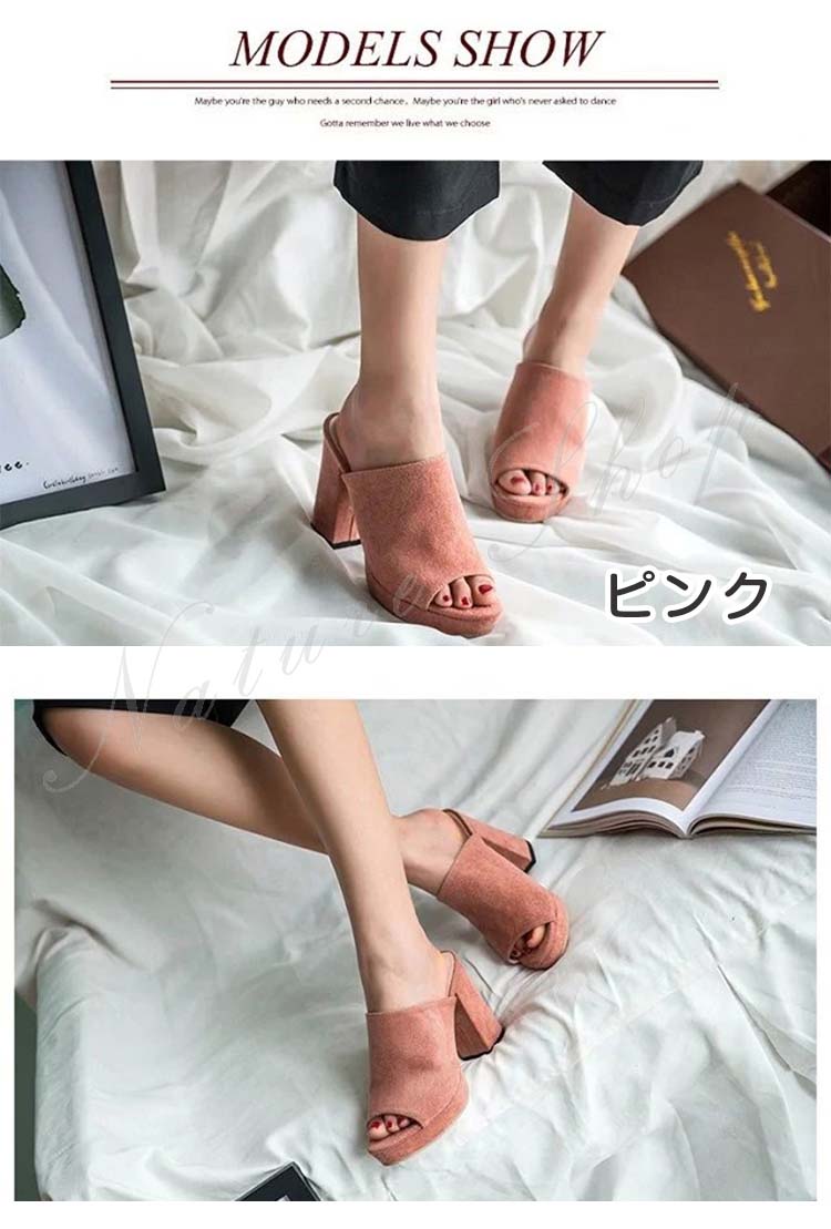 サンダル レディース 厚底サンダル ミュール 太ヒール 歩きやすい ポインテッドトゥ 10cmヒール ストーム付き スエード ハイヒールミュール