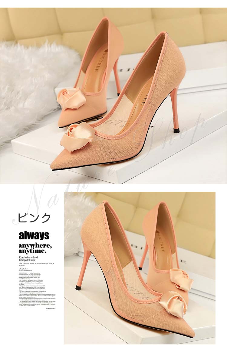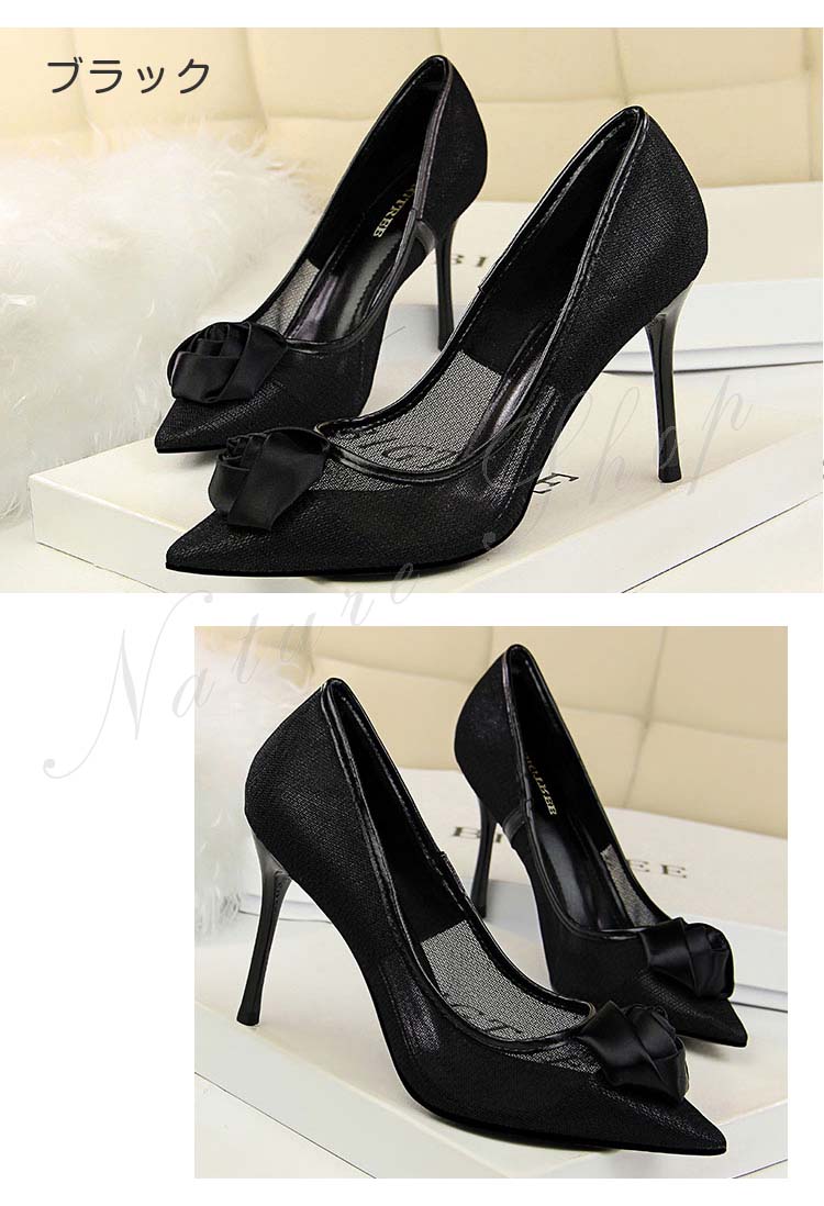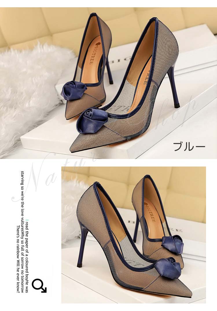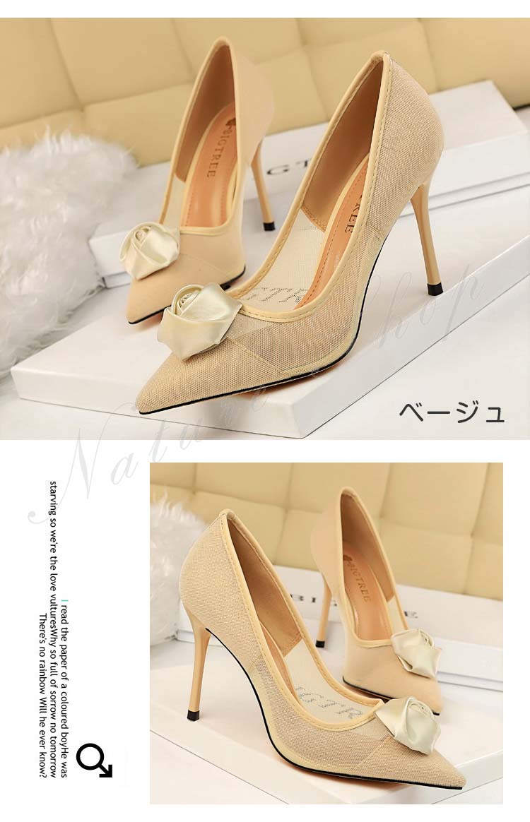 美脚 メッシュ パンプス バラ シューズ ウェディングシューズ パンプス ブライダルシューズ パンプス 結婚式 レディース ハイヒール 発表会 演奏会 ピンビール