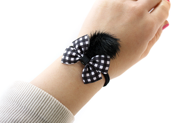 15mm幅ブラックチェック柄ダブルりぼ