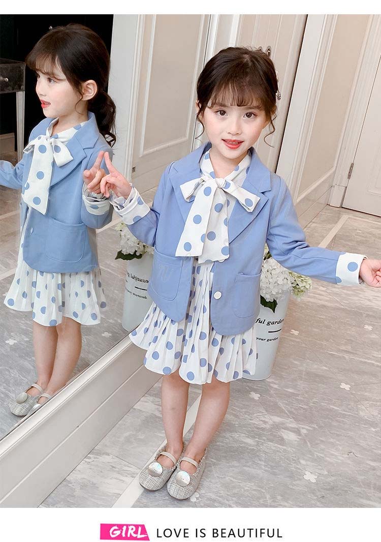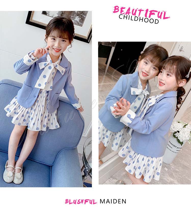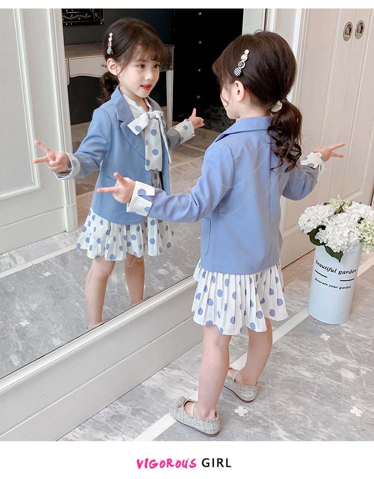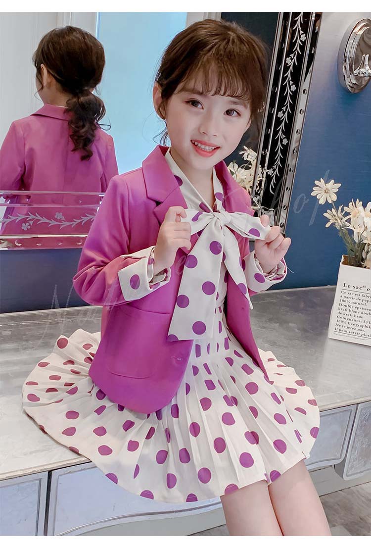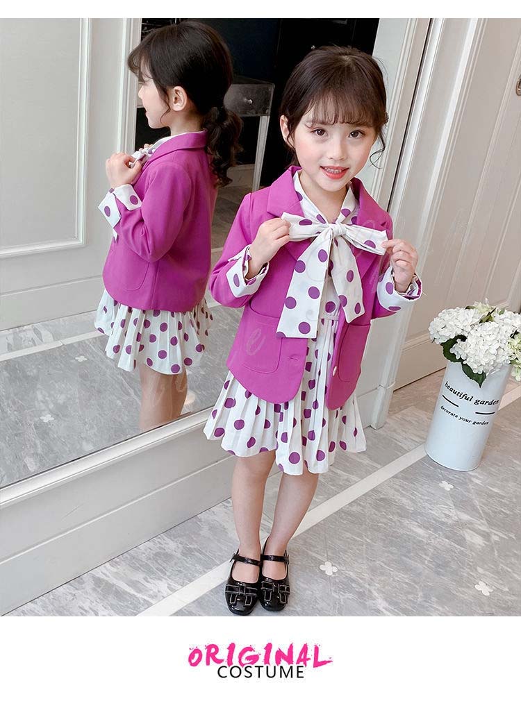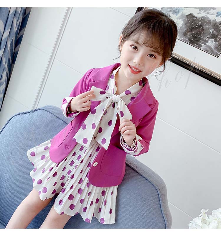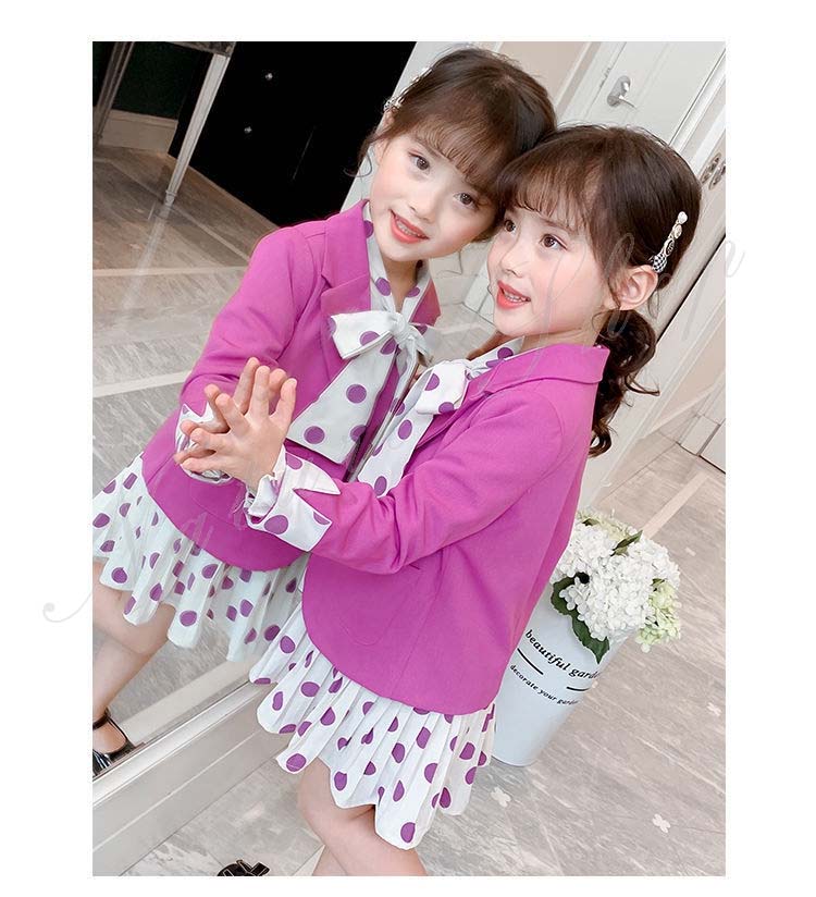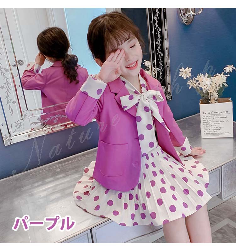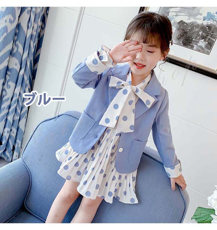 子供 スーツ 結婚式 親族 表彰式 フォーマルスーツ 女の子 おしゃれ こども ワンピース キッズ 女の子 長袖 秋 きれいめ フォーマル 150 ドット柄 水玉柄 スーツ ジャケット