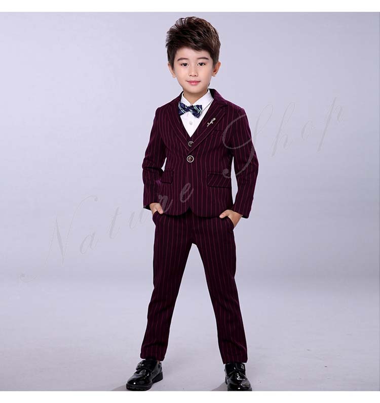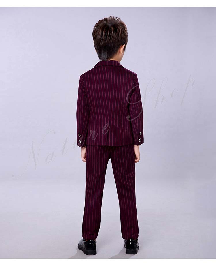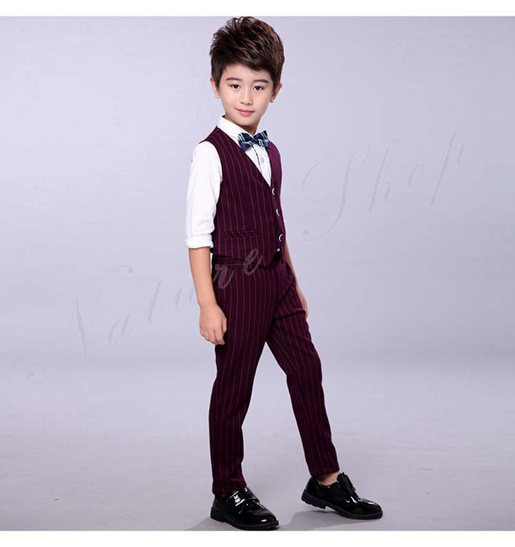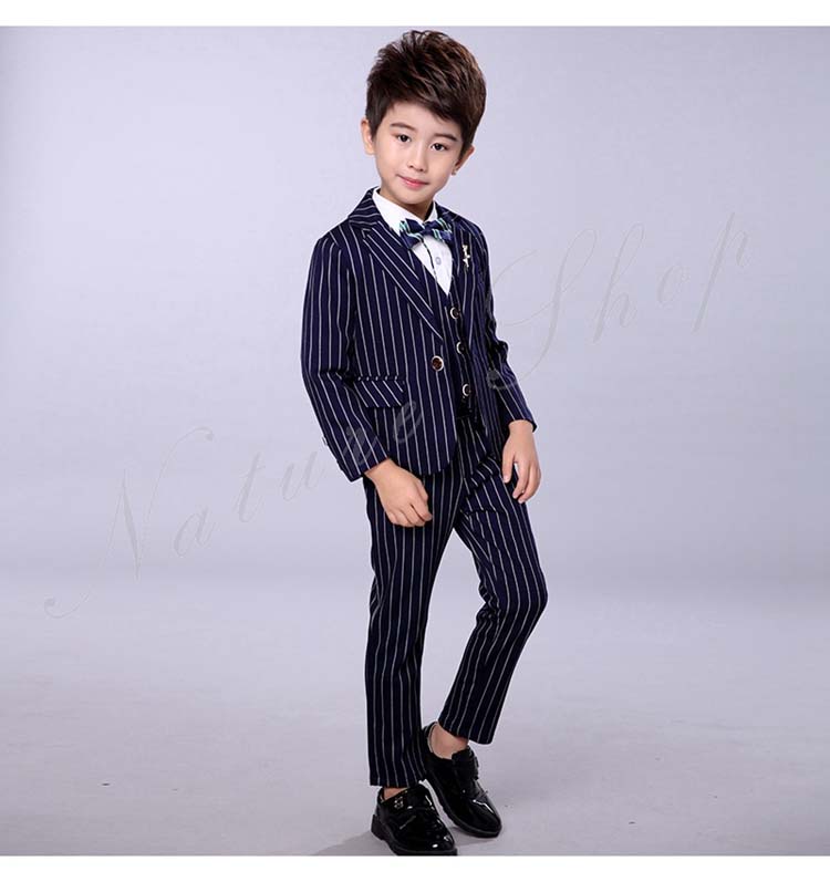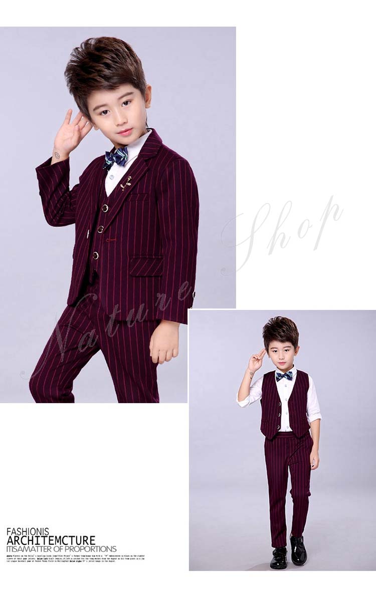 子供服 フォーマル 男の子 セットアップ 上下セット 長ズボン ロング丈パンツ スーツベスト スーツジャケット ストライプ柄 蝶ネクタイ プローチ 入学式 卒業式 発表会