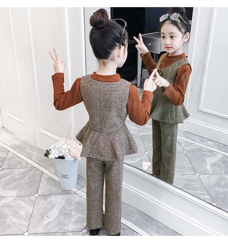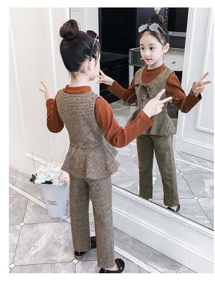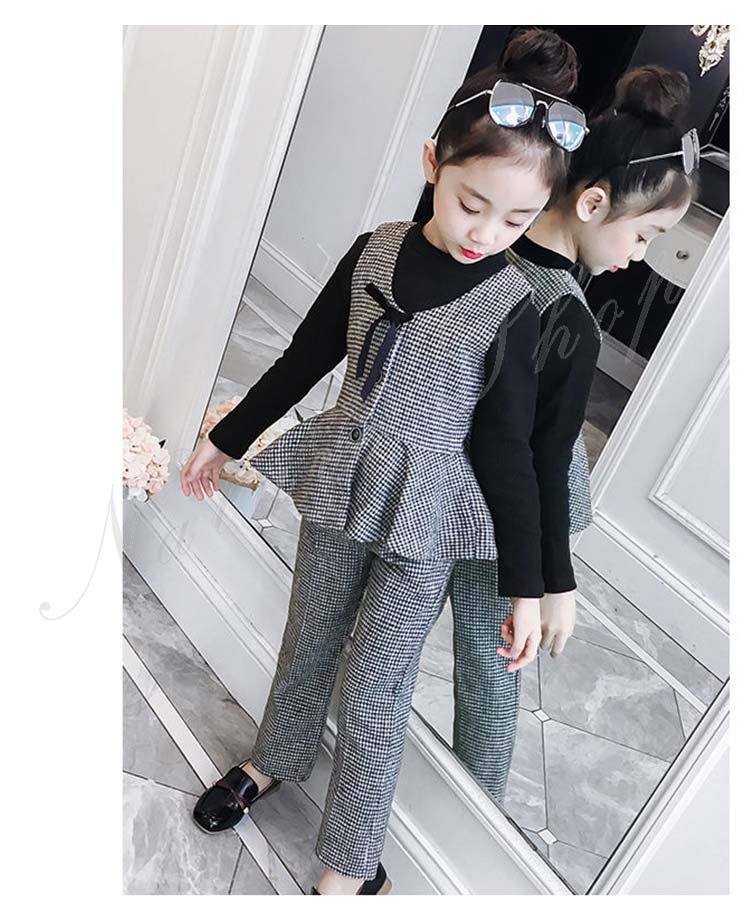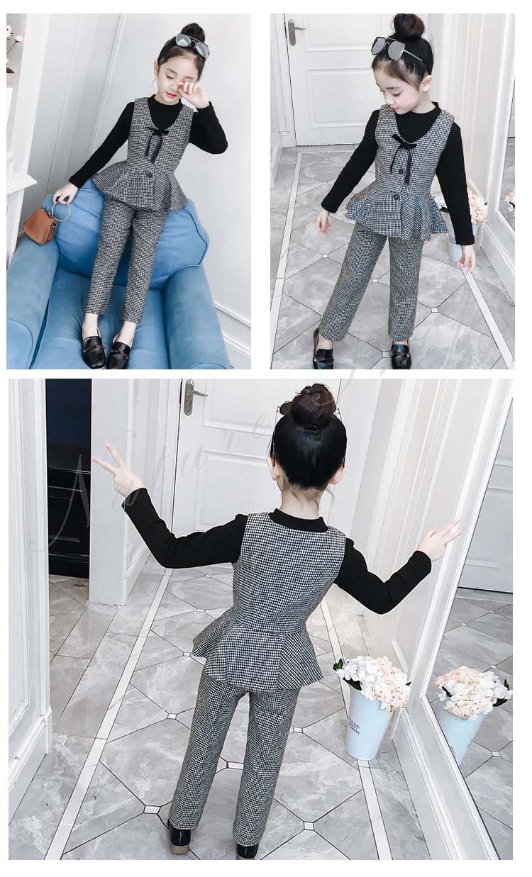 入学式 子供服 女の子 セットアップ 秋 結婚式 親族 表彰式 フォーマルスーツ 女の子 こども セットアップ 上下 3点セット Tシャツ 長袖 ベスト 長ズボン チェック柄 総柄