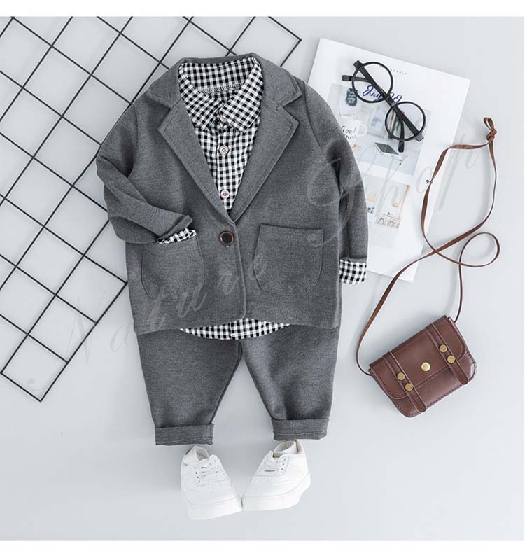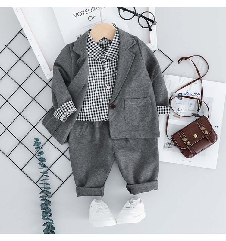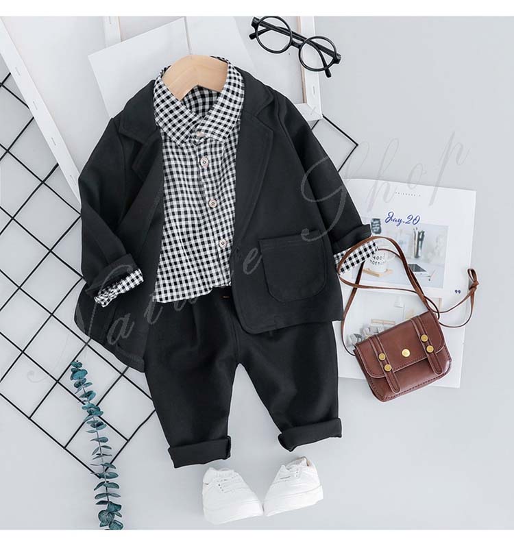 子供 スーツ 結婚式 親族 表彰式 フォーマルスーツ 男の子 おしゃれ こども スーツ ジャケット スーツジャケット 長ズボン シャツ チェック柄 上下 3点セット ピアノ 発表会