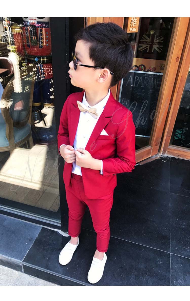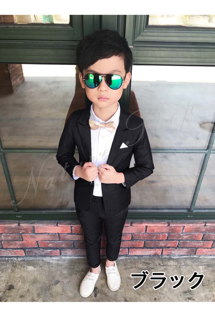 セットアップ 長袖 スーツ ジャケット 長ズボン 無地 蝶ネクタイ付き 上下セット 子供 スーツ 結婚式 親族 表彰式 フォーマルスーツ 男の子 おしゃれ こども 2色選べる