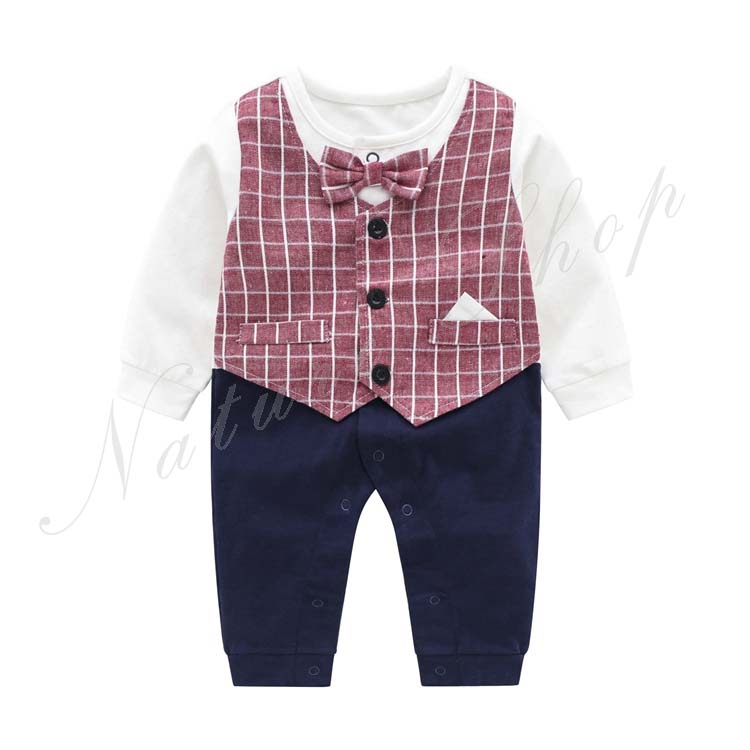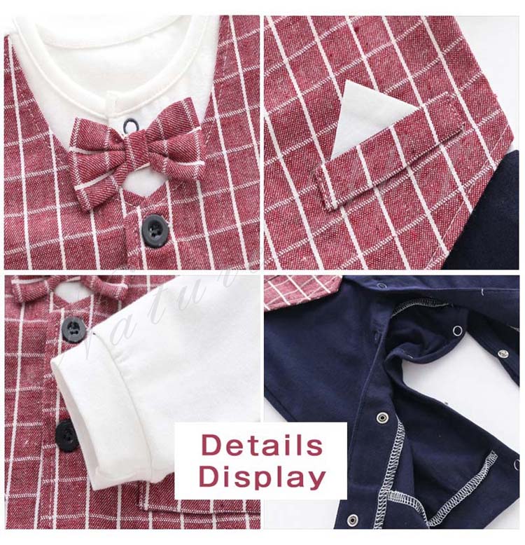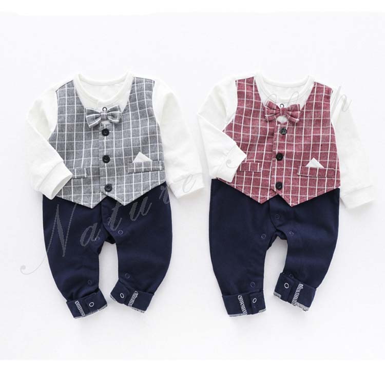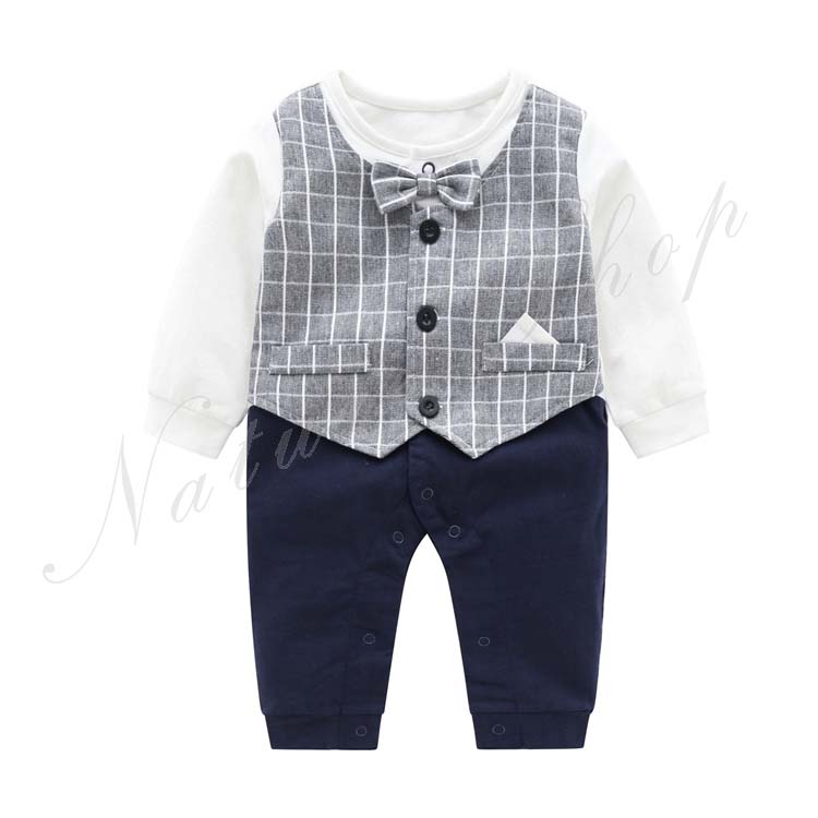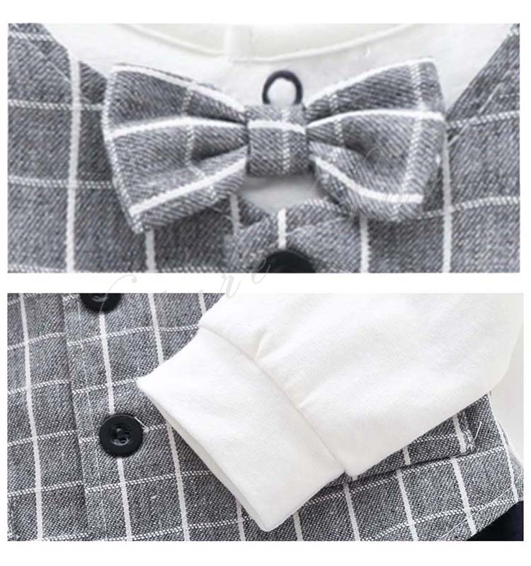 子供服 フォーマル 男の子 セットアップ 春夏秋 赤ちゃん ロンパース カバーオール ベビー 新生児 男の子 長袖 チェック柄 襟抜き 蝶ネクタイ飾り オールインワン 紳士