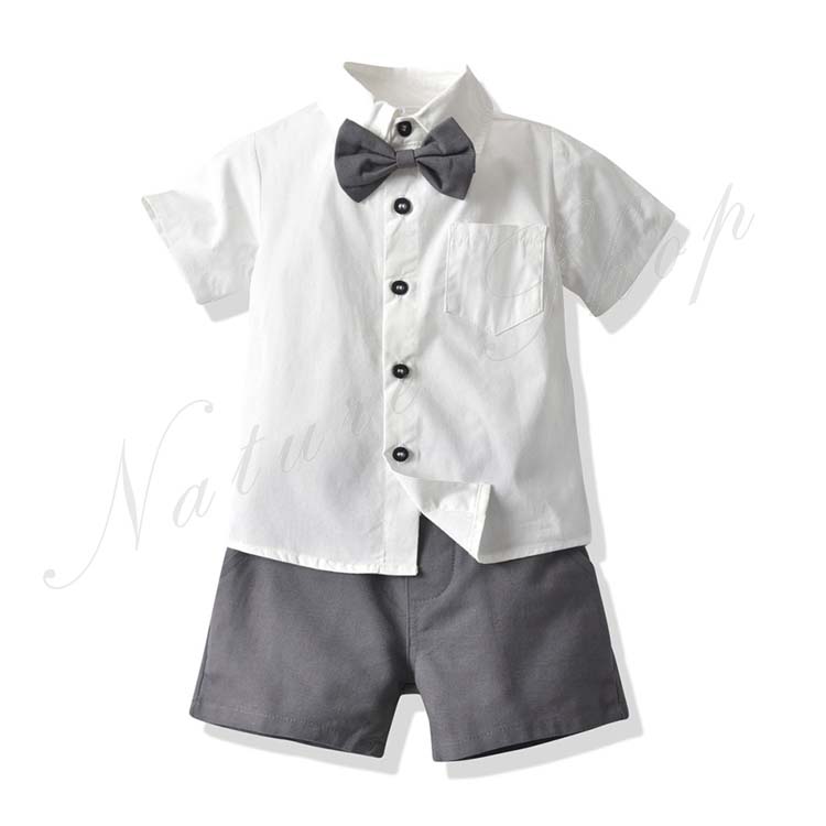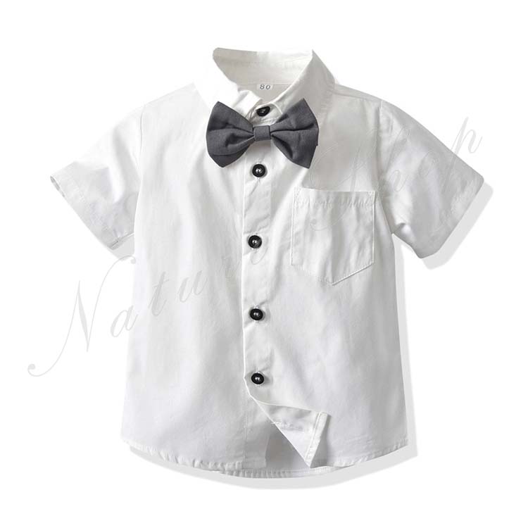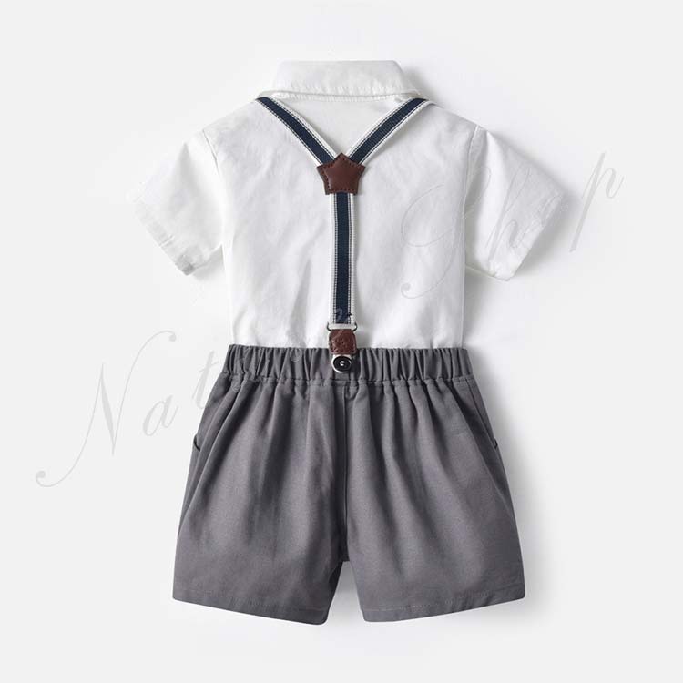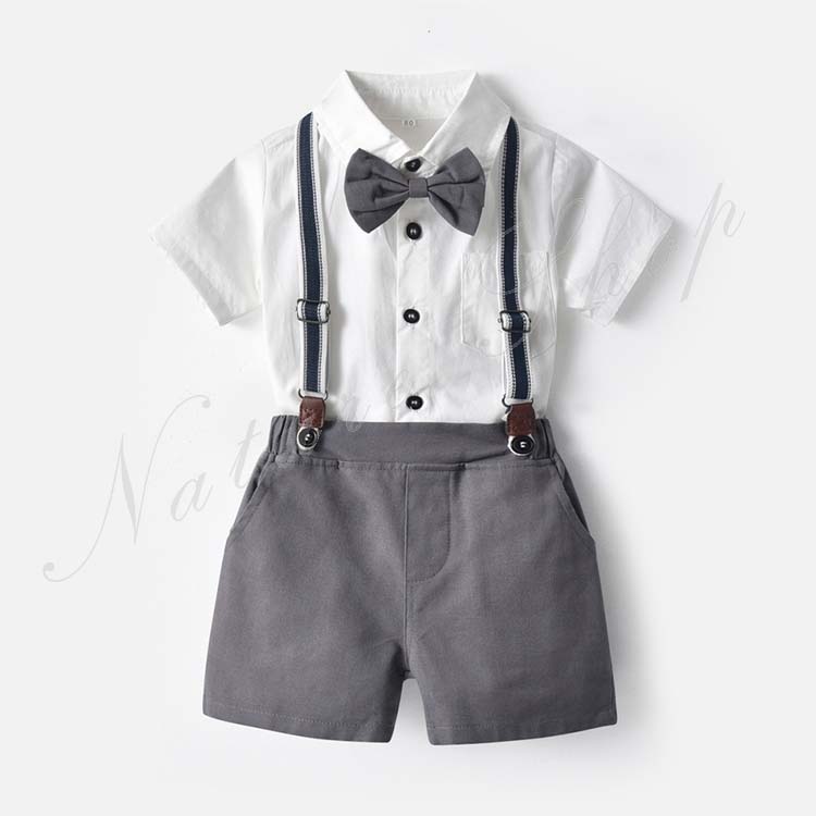 セットアップ 夏 半袖 綿 キッズ フォーます シャツ 無地 蝶ネクタイ オーバーオール ショートパンツ 短パン 半ズボン サスペンダー ベビー服 赤ちゃん 新生児 幼児 児童