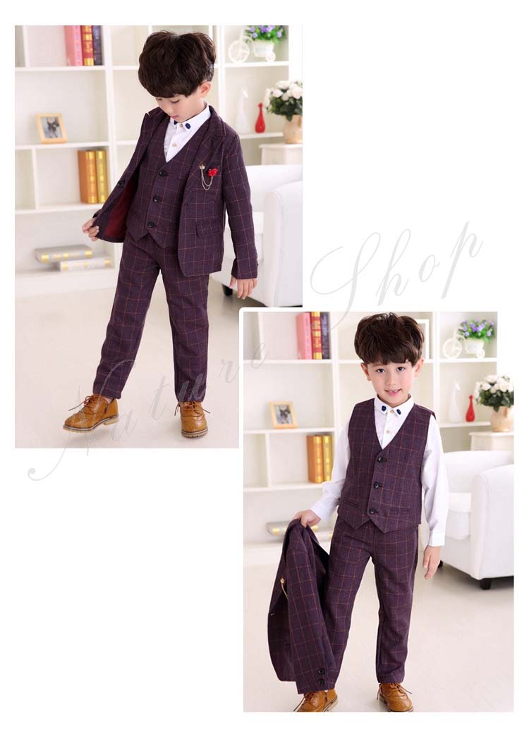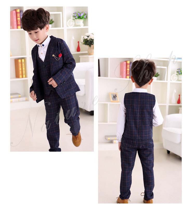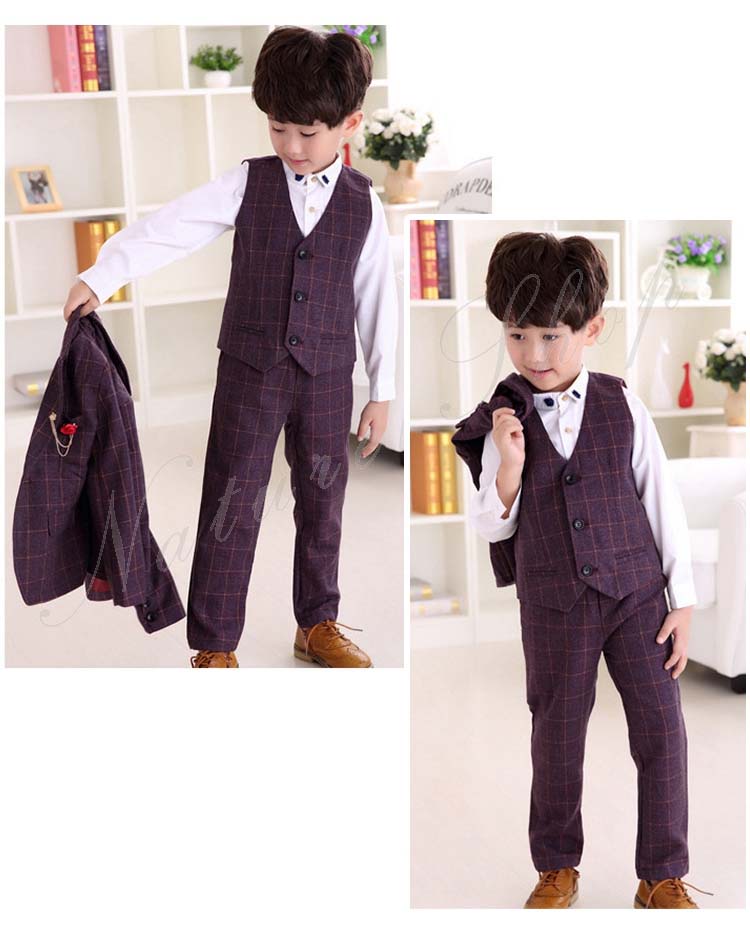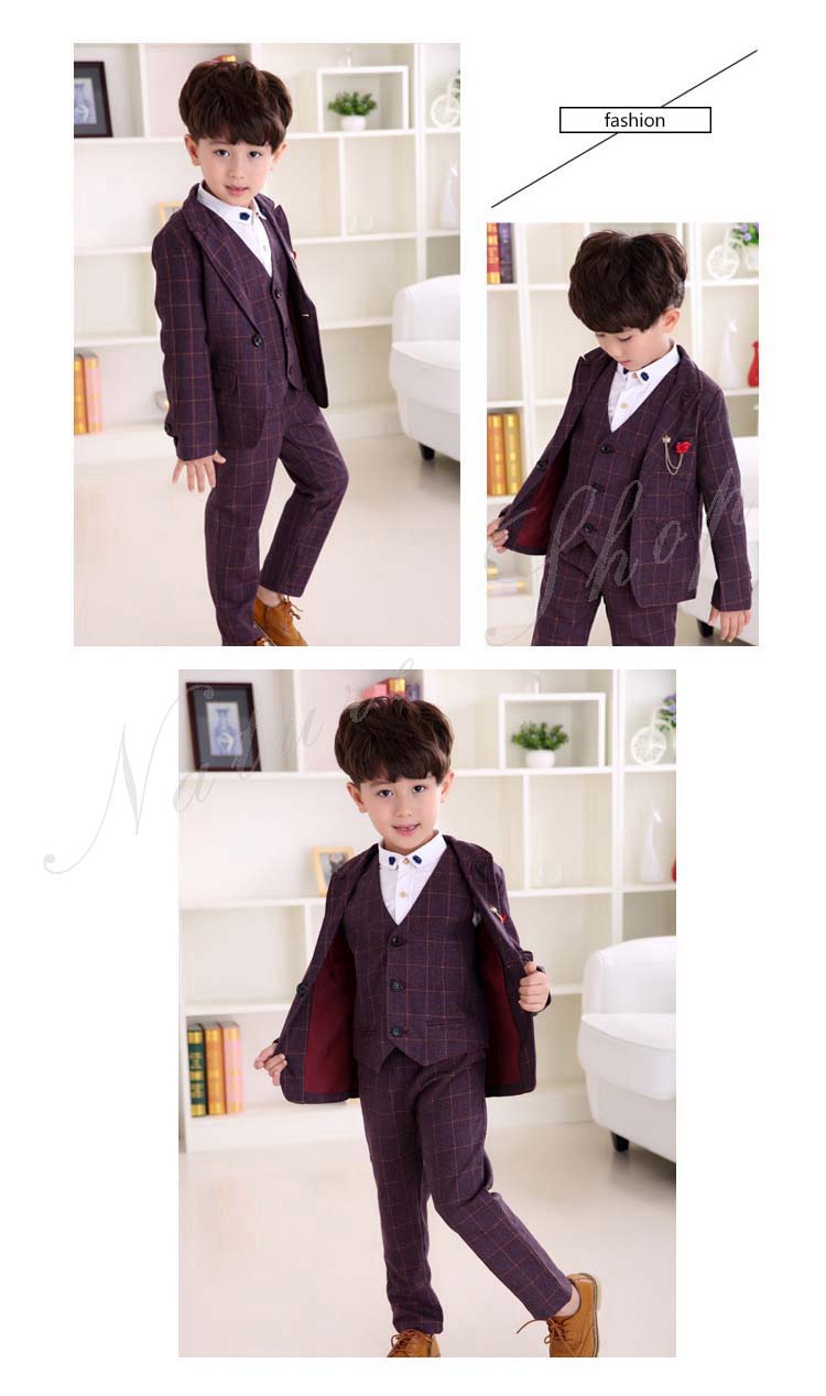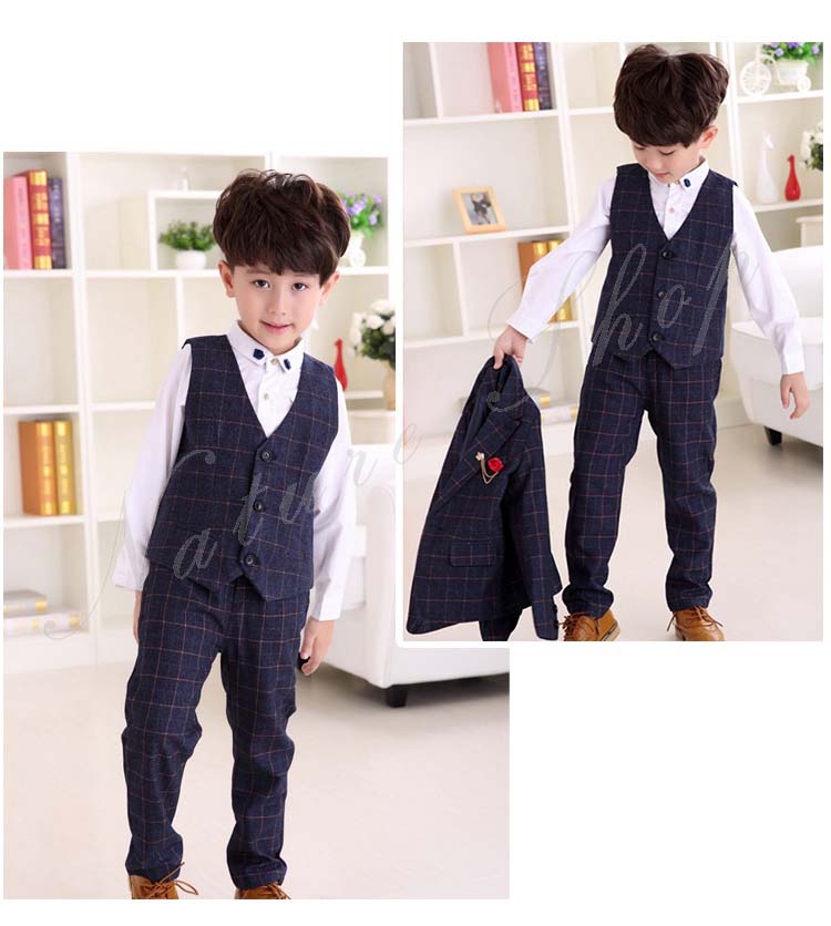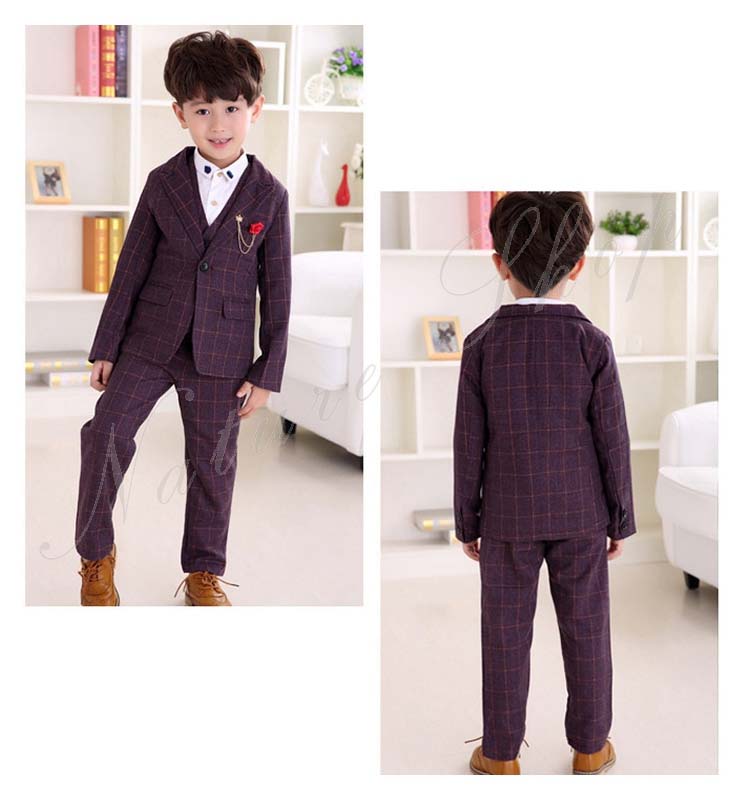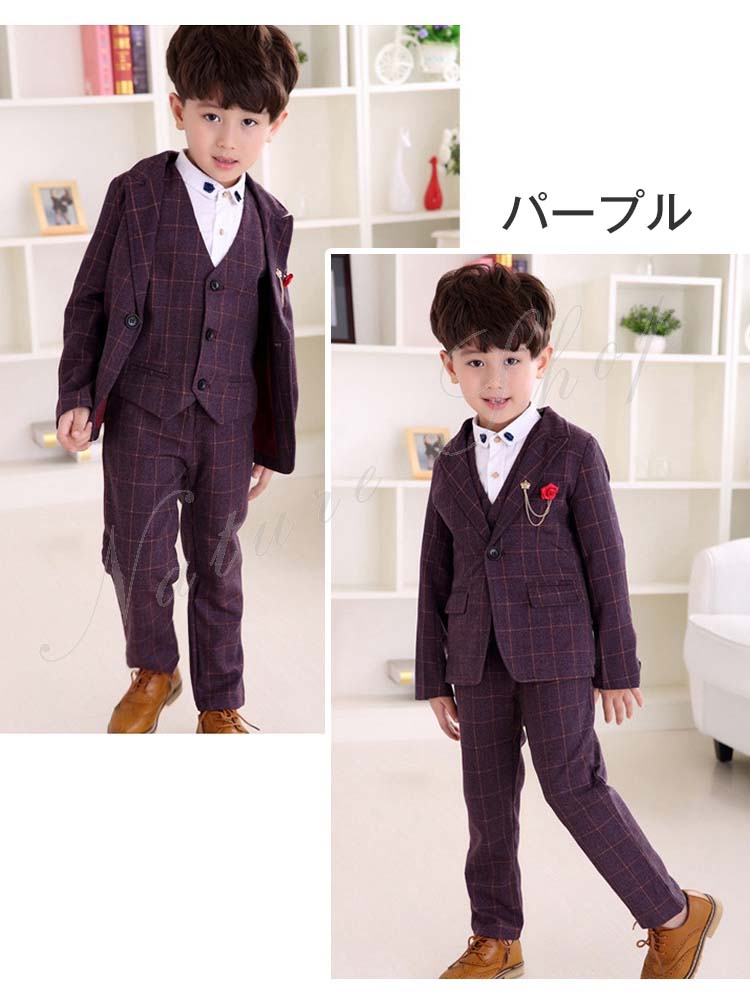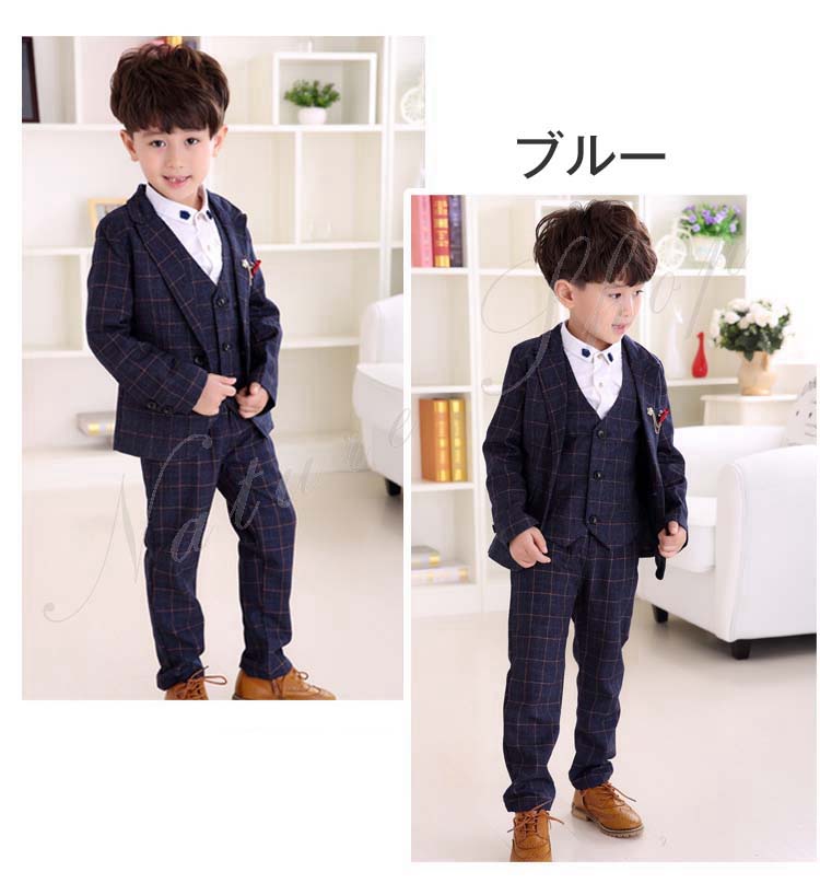 子供 スーツ 結婚式 親族 表彰式 フォーマルスーツ 男の子 おしゃれ こども チェック柄 スーツジャケット ベスト 長ズボン ロング丈 パンツ 4点セット 上下セット 総柄