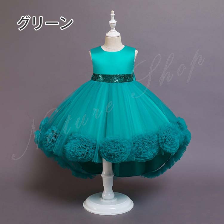 ピアノ発表会 ドレス 子供 フォーマル キッズドレス 女の子 ジュニアドレス パーティー レース フォーマルドレス フラワーガール 赤 青 白 ピンク 緑 黄 ネービー 膝丈
