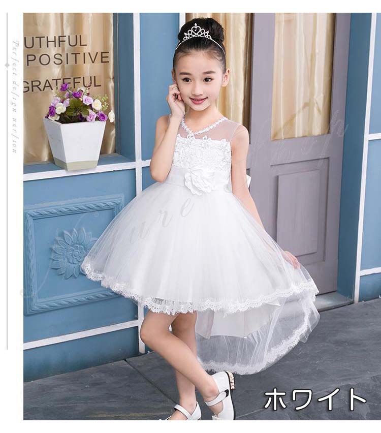 韓国子供服 女の子 レース 韓国風 無地 ホワイト プリンセス キッズドレス 蝶結び リボン ジュニア ドレス 女の子ドレス 白ワンピース