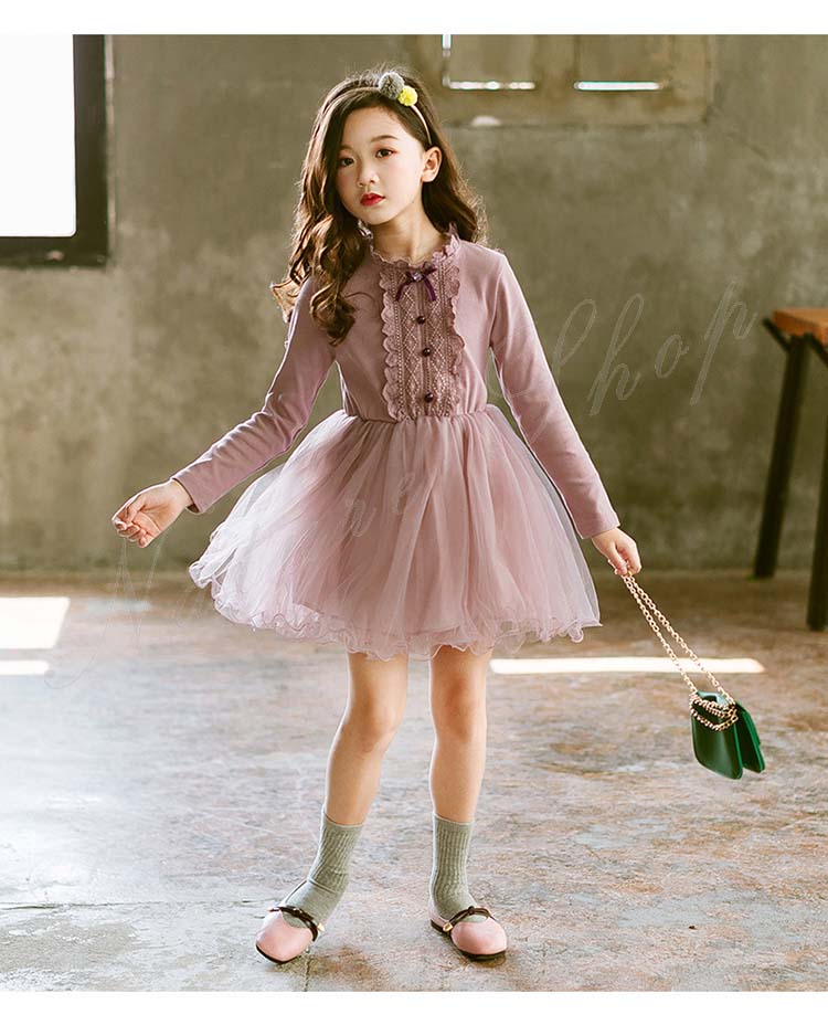 ピアノ発表会 ワンピース 女の子 子供 ドレス 長袖 子供ワンピース 結婚式 子供ドレス 発表会 結婚式 ロング レース コンクールドレス ピンク 花嫁